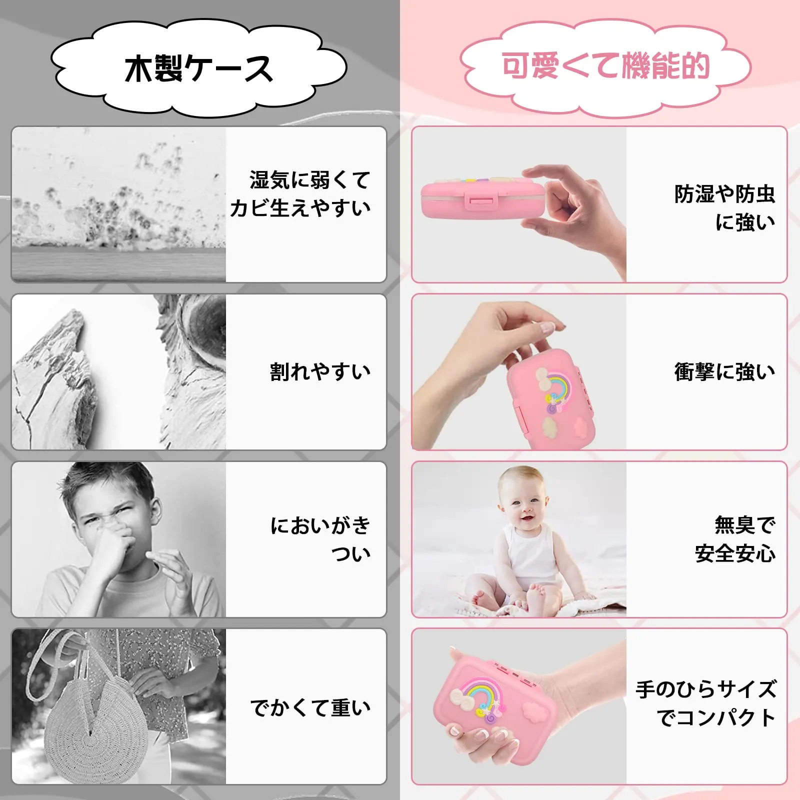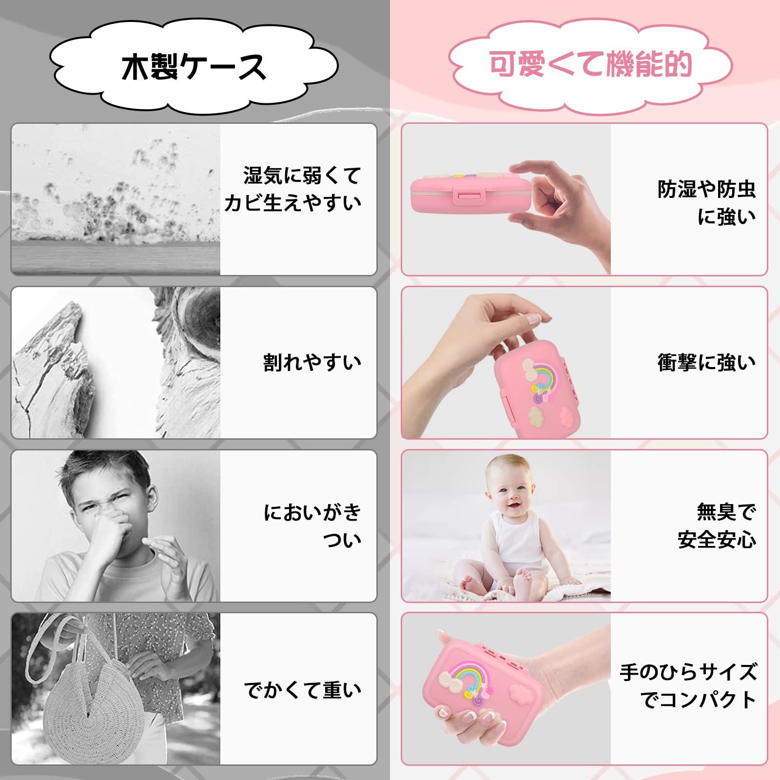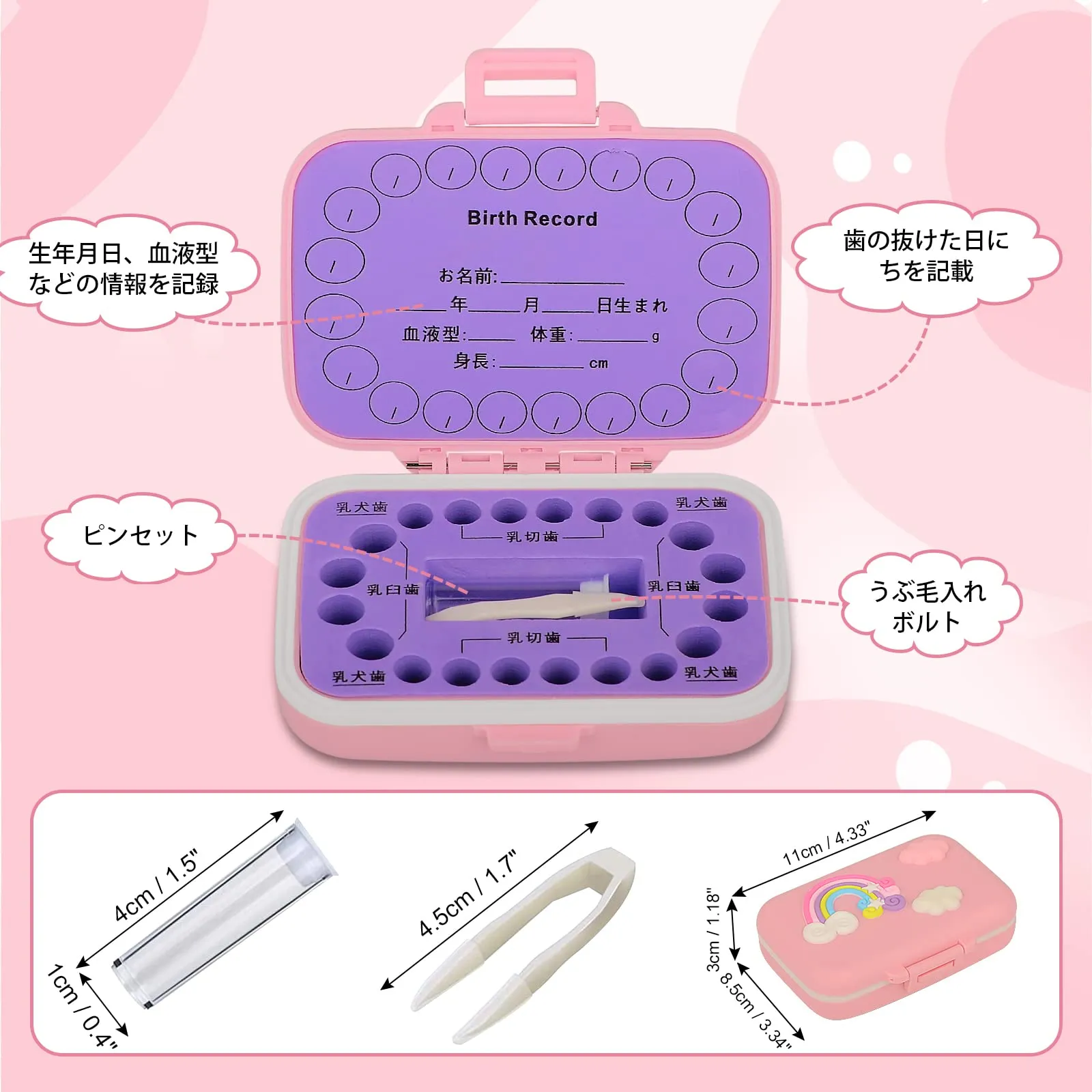 乳歯ケース 乳歯入れケース 女の子 子供 抜けた歯 保管 収納 赤ちゃん 成長記念 出産祝い 誕生日プレゼント (ピンク(虹の柄あり))