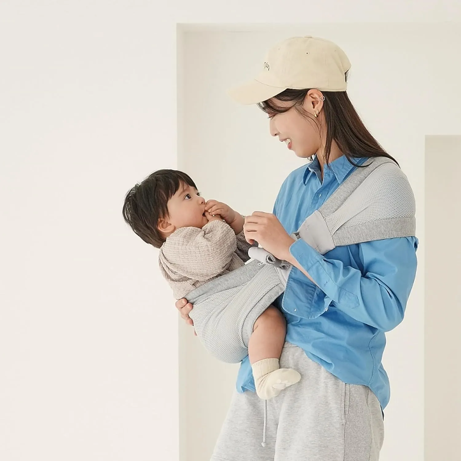 片側のストラップは約25cmまで調節できるため、ご家族皆様が赤ちゃんとの時間を快適にお過ごしいただけます。