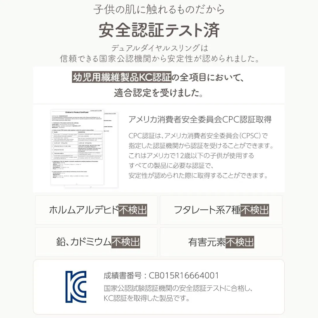 子どもの肌に触れるものだから安全認証テスト済。