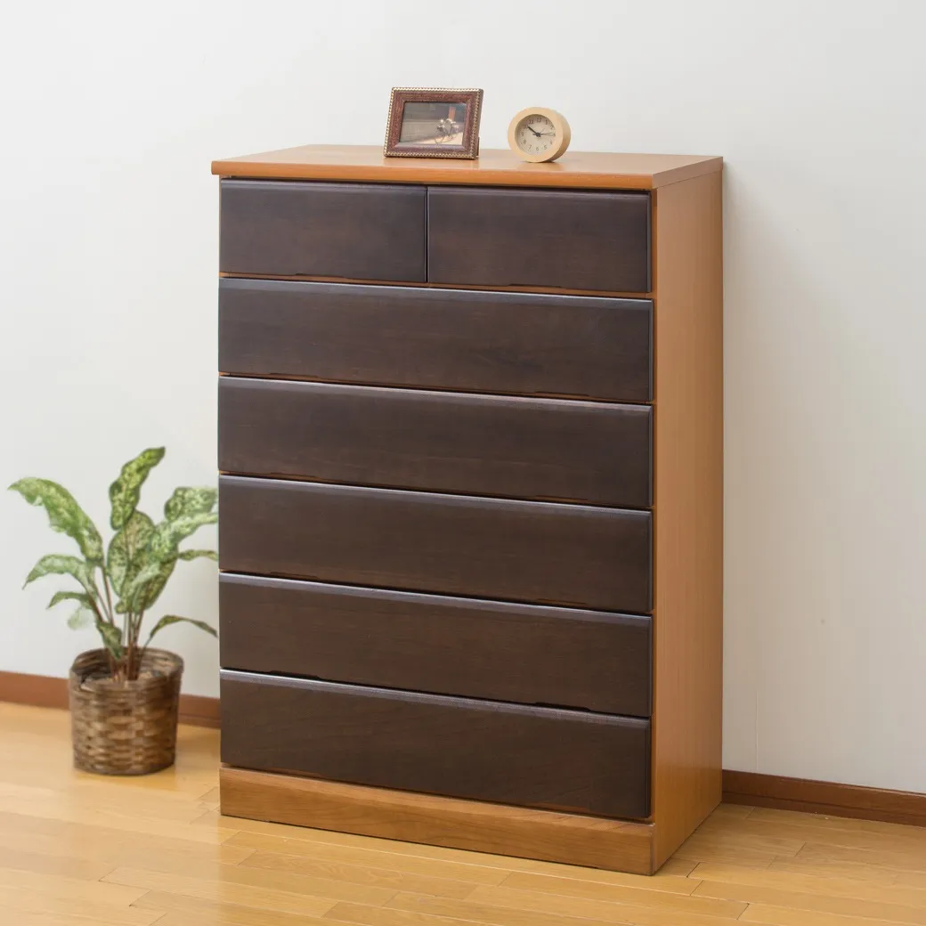 〈大川産〉天然木衣類収納チェスト 80cm幅6段 完成品