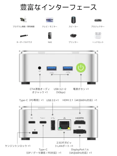 【16GB DDR4メモリ最大64GB対応】DDR4 16GB(8*2)メモリを標準搭載。2*SO-DIMMウェブブラウジング、ExcelやZoomなどの同時使用も快適です。SO-DIMMスロット2で最大64GBまで拡張可能。将来的な用途拡大にも安心な高い拡張性が魅力です。2400MHzの動作周波数により、アプリの起動やデータ処理もスムーズに。自作PCレベルの自由度を備えたミニPCです。