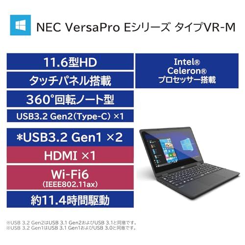 NEC 国内生産 ノートパソコン VersaPro Eシリーズ タイプVR 11.6 型 インテル? Celeron? プロセッサー N5100 メモリ8GB SSD64GB Windows 11 バッテリー駆動11.4時間 重量約1.32kg ブラック Y`