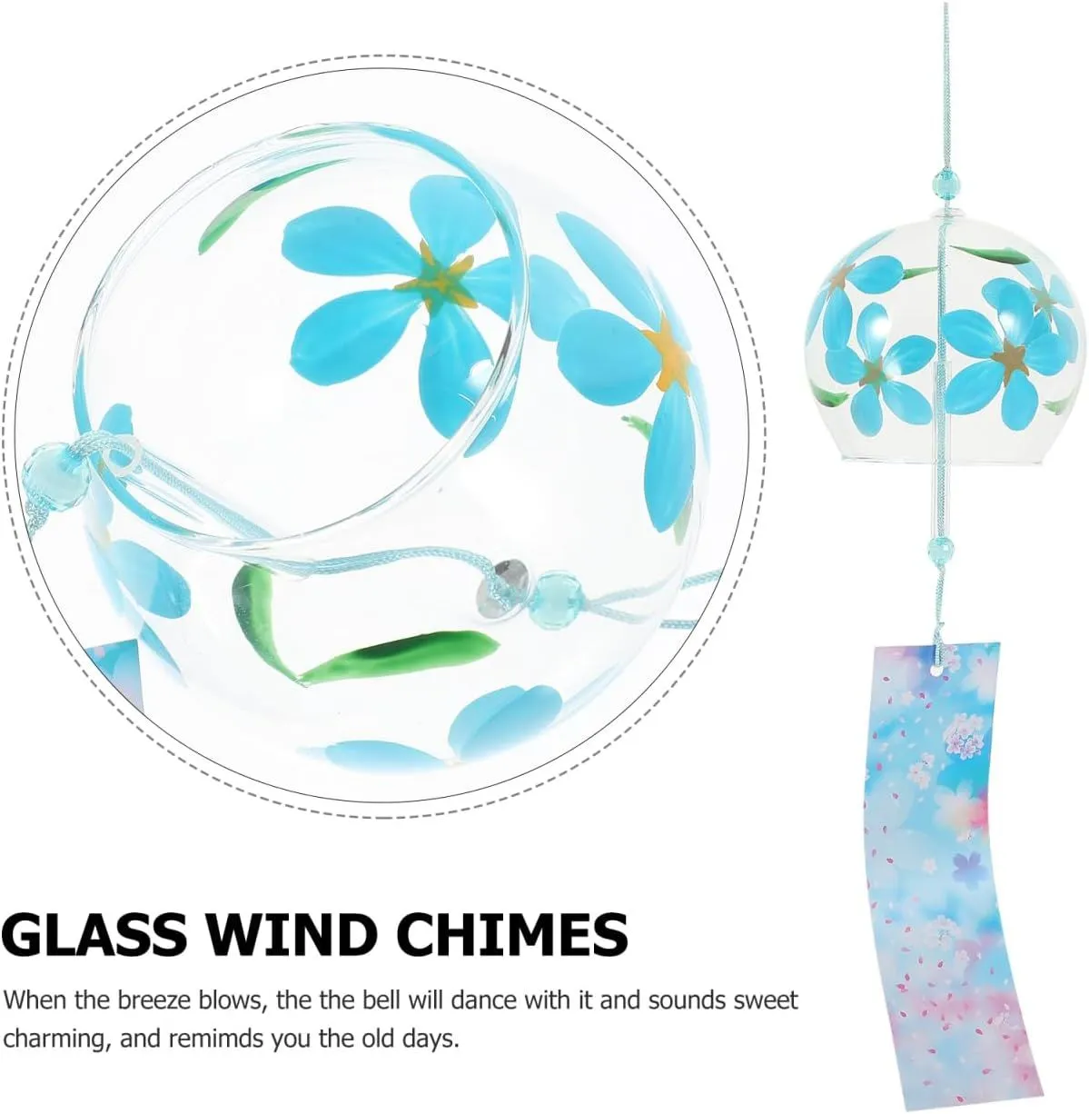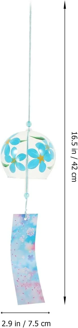 和風ガラス風鈴 ブルーベル 16.5インチ クリアメロディ ウィンドチャイム 室内外装飾 ペンダントギフト 寝室 リビング オフィス 車用 c-179