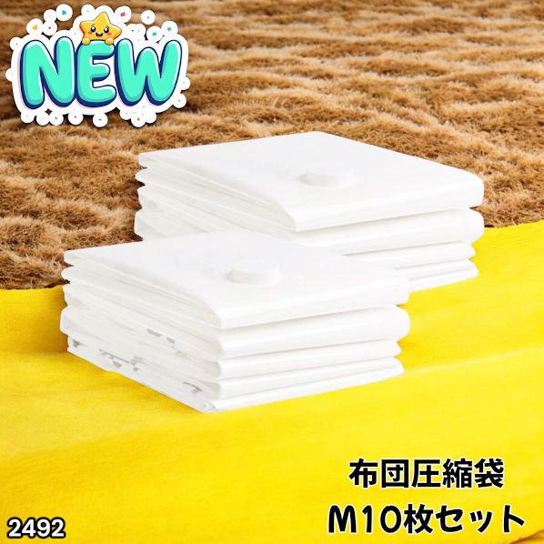 #2492 圧縮袋 Mサイズ 10枚 衣類 旅行 収納袋 衣類 大容量 毛布 真空圧縮袋 バルブ式 圧縮袋セット ※一部地域離島別途配送料有