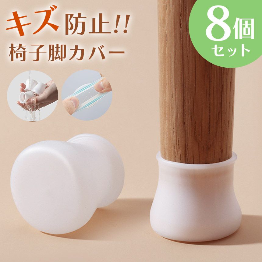 2脚分8個セット 椅子脚カバー 椅子脚キャップ 椅子足カバー セット テーブル 椅子 イス いす シリコン 丸 円形 四角 長方形 斜め 傾斜 傷防止 床 クッション 滑り止め 防音 ホワイト 白 ゴム 保護 机 足 脚 キズ 家具