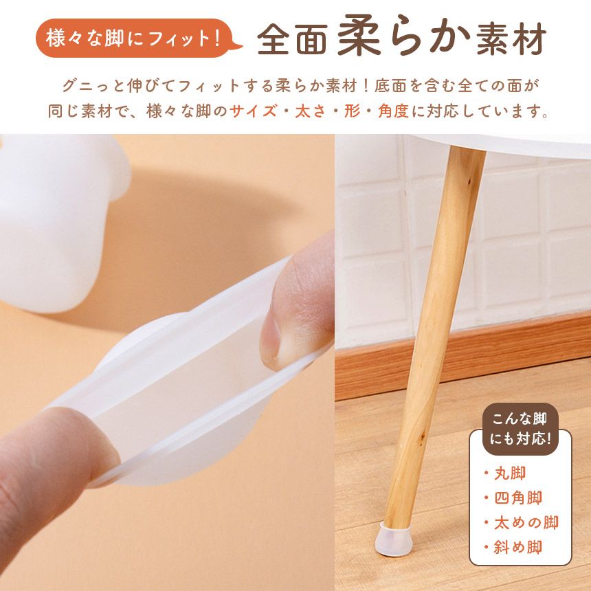 4脚分16個セット 椅子脚カバー 椅子脚キャップ 椅子足カバー セット テーブル 椅子 イス いす シリコン 丸 円形 四角 長方形 斜め 傾斜 傷防止 床 クッション 滑り止め 防音 ホワイト 白 ゴム 保護 机 足 脚 キズ 家具