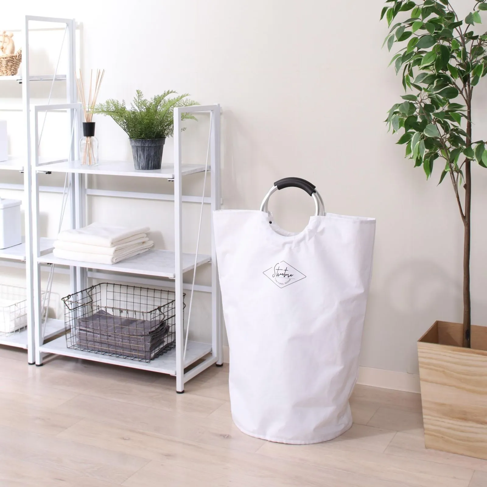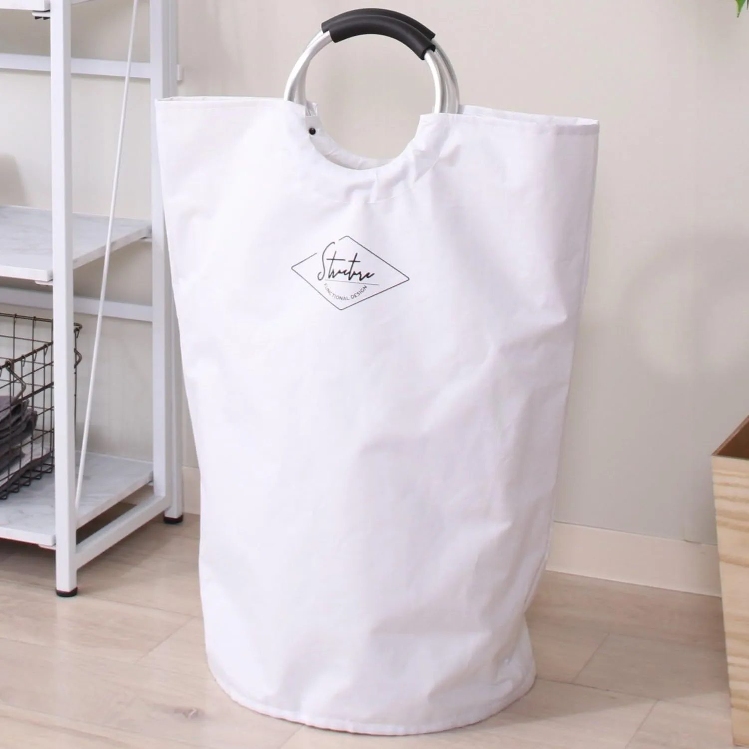 不二貿易 ランドリーバスケット トレーニング用品収納 キャンプ用品 アウトドア用品 フィットネス用品 おもちゃ 収納 洗濯かご 折りたたみ可能 取っ手付き ホワイト 40516