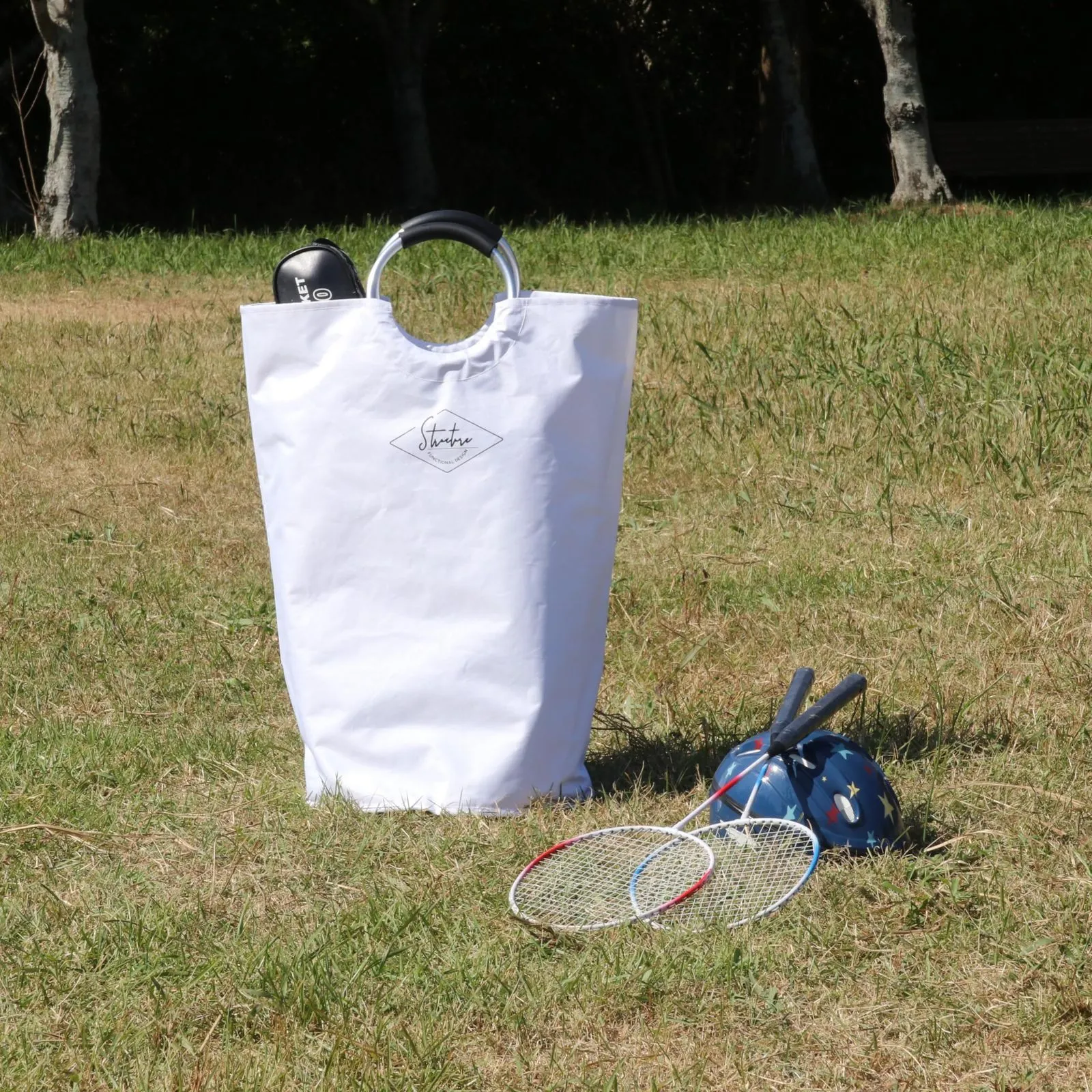 洗濯ものを入れたり、コインランドリーに持っていく際にお使いいただくランドリーバッグとしてはもちろん、キャンプやピクニック、お子様と公園に行くときのおもちゃ収納として等、多くのシーンでご使用いただける用に作りました。