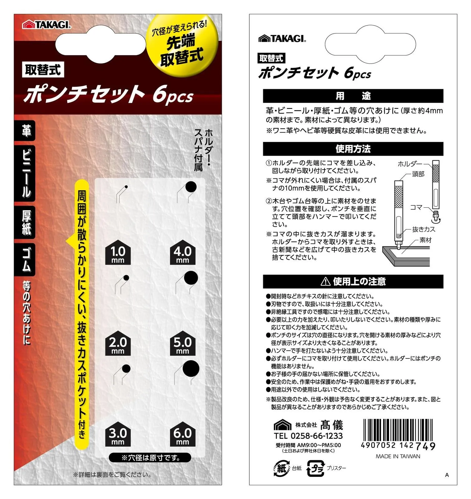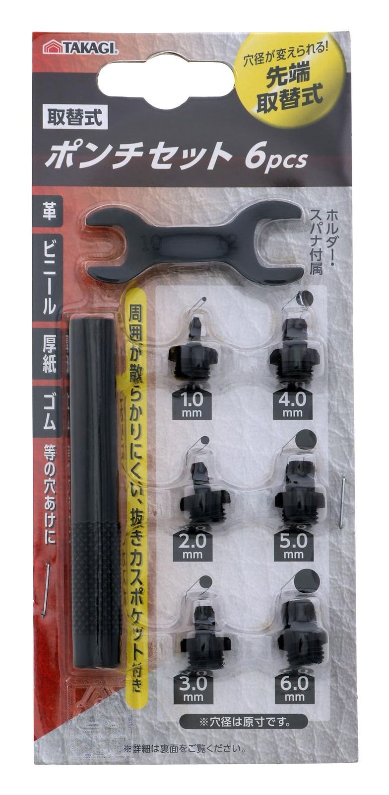高儀(Takagi) 取替式 ポンチセット 6pcs ホルダー・スパナ付属 先端 取り替え 6サイズ 穴あけ ポンチ レザークラフト 革 ビニール 厚紙 ゴム ベルト穴