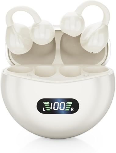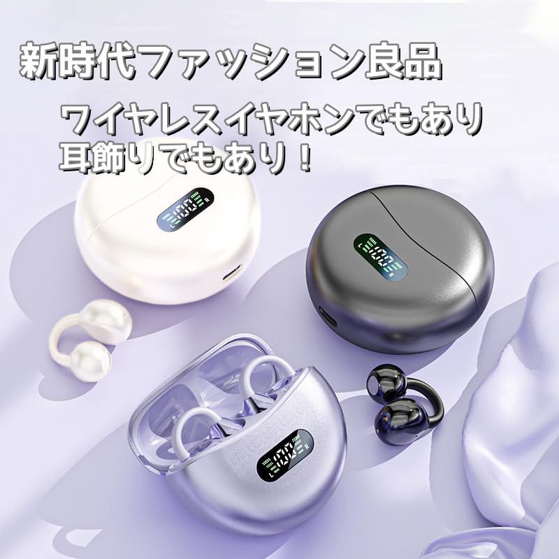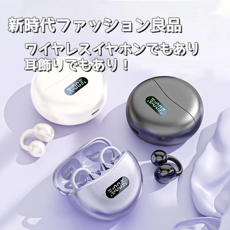 【2025進化 イヤーカフイヤホン】 イヤホン bluetooth ワイヤレス Bluetooth5.49 ながら聴き オープンイヤー 耳掛け 耳挟み式 骨伝導イヤホンより便利 耳を塞がない マイク付き ENC通話 数字LEDディスプレイ残量表示 人間工学設`