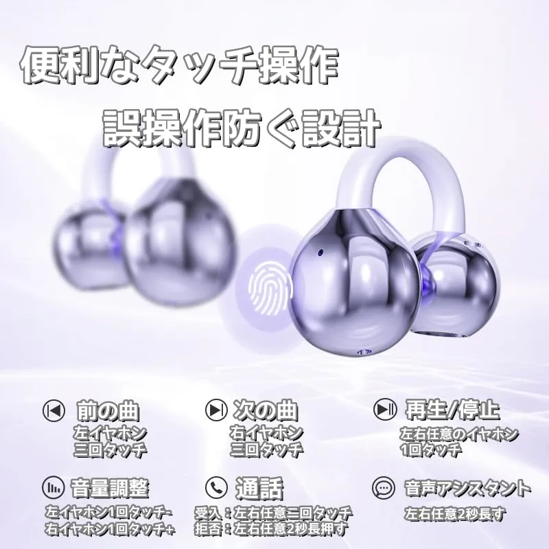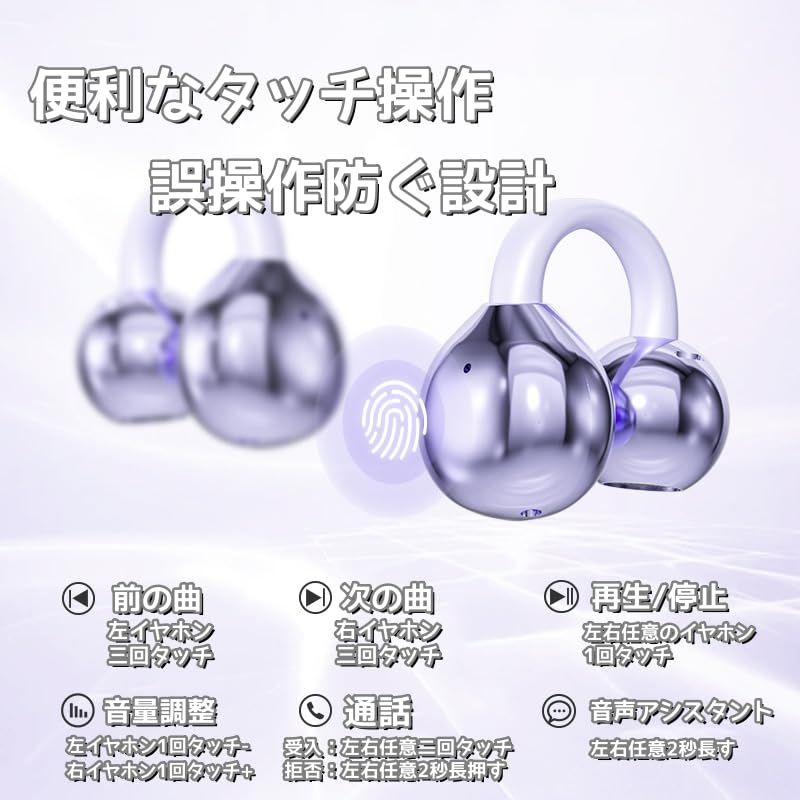 【綺麗な耳飾りのようなイヤホン、耳に全日付けても痛くない!ストレス無く快適で音楽聞き、映画を見る、通話、ゲーム、会議】 真のイヤーカフbluetoothイヤホンとして、よりクリア、より快適です。オーディオ向けの小型で高度に統合されたソリューションに似ており、チップ技術とコンピューティング能力の向上により、複数の音源ポイントを使用し、動的なモニタリングと計算を通じて合成音源を形成できます。合成音源間の位相関係を動的に調整して外部音の拡散を抑え、きめ細かなイヤ内音の伝達性能を高めます。 また、人間の耳が敏感ではない周波数範囲の音質の詳細を人間の耳が敏感な周波数範囲に移動させ、聴覚の健康に対する音エネルギーの脅威を軽減しながら、より良い音質パフォーマンスをもたらします。