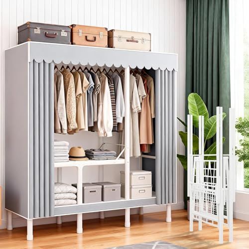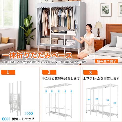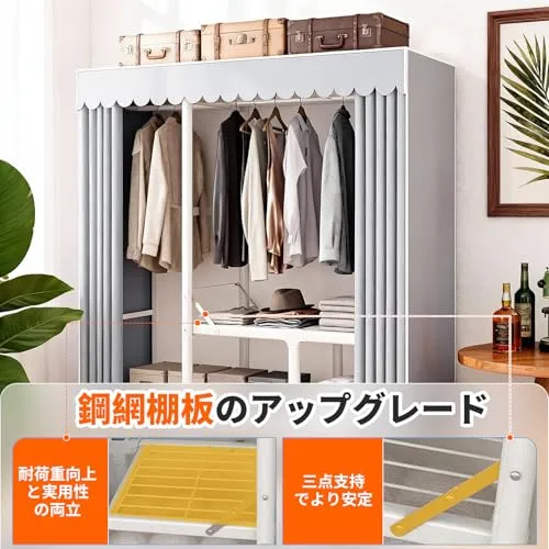 サイズと素材:約幅210奥行48高さ172cm。大容量ワードローブで、シングルからカップルまで快適に利用できます。頑丈な金属フレームに、防塵性に優たカバーを採用。ホコリが付着しにくく清潔を保ちます。