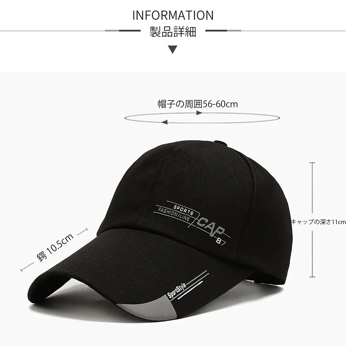 [Lizihengpi] キャップ メンズ 深め ベースボールキャップ ランニング レディース メッシュ 黒 帽子 春 夏 紫外線対策 日よけ 無地プリント 野球帽 調整可能 男女兼用 UVカット 56-60cm