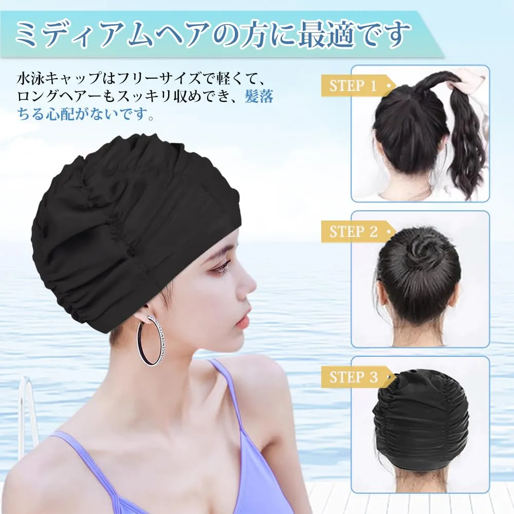 サムコス 水泳帽子 プール帽子 水泳帽 女 スイミングキャップ 水泳キャップ大人 おしゃれ ふんわり ロングヘア対応 伸縮性良い 無地 男女兼用 大人用