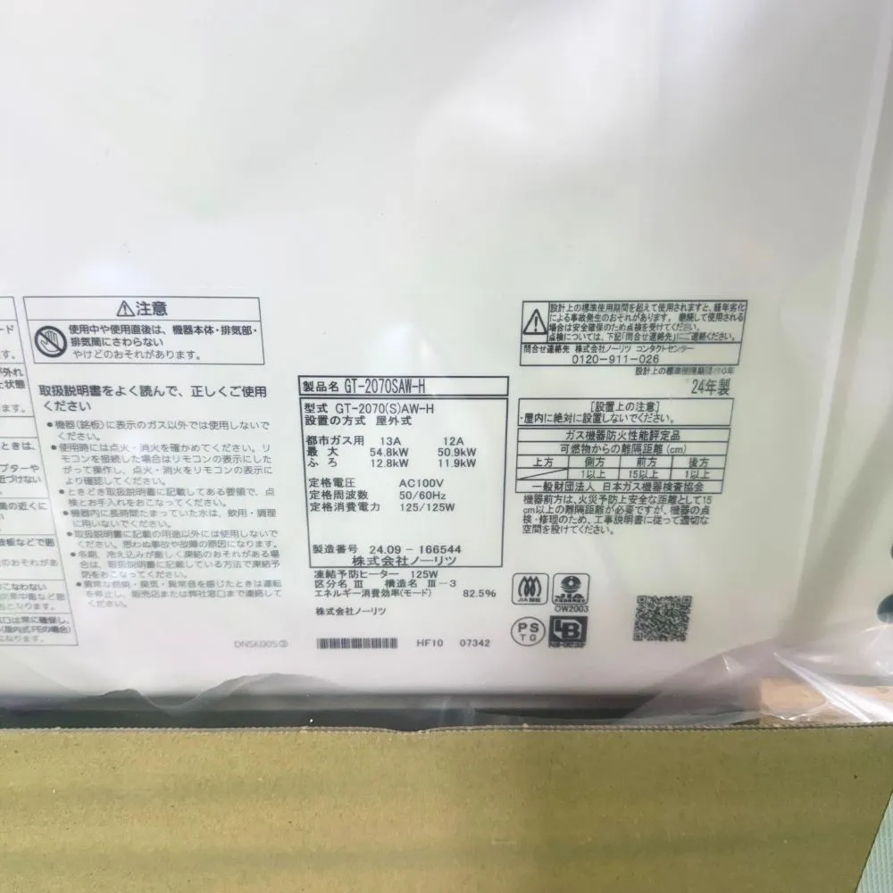 【福岡在庫】 ノーリツ GT-2070SAW-H 20号 オート PS扉内 上方排気延長形 都市ガス 24年製 未使用品 アウトレット
