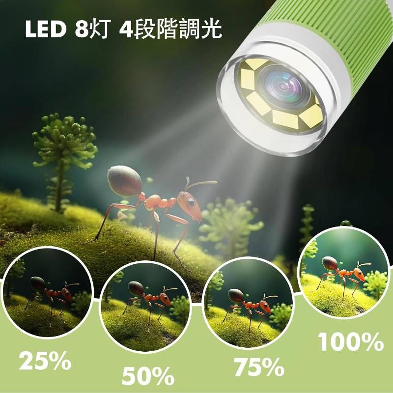 ●視認性に優れたライティング 8つの高輝度LEDライトを搭載。 4段階の調光機能により、対象物に合わせて最適な明るさで観察できます。