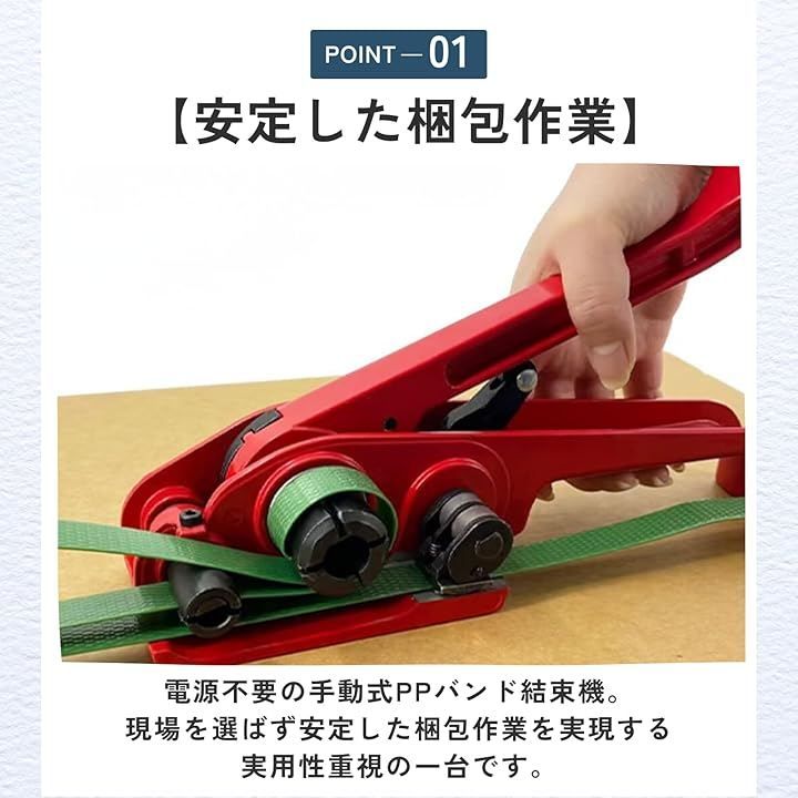 「安定した梱包作業」電源不要の手動式PPバンド結束機。