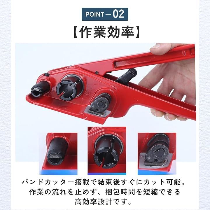 「作業効率」バンドカッター搭載で結束後すぐにカット可能。