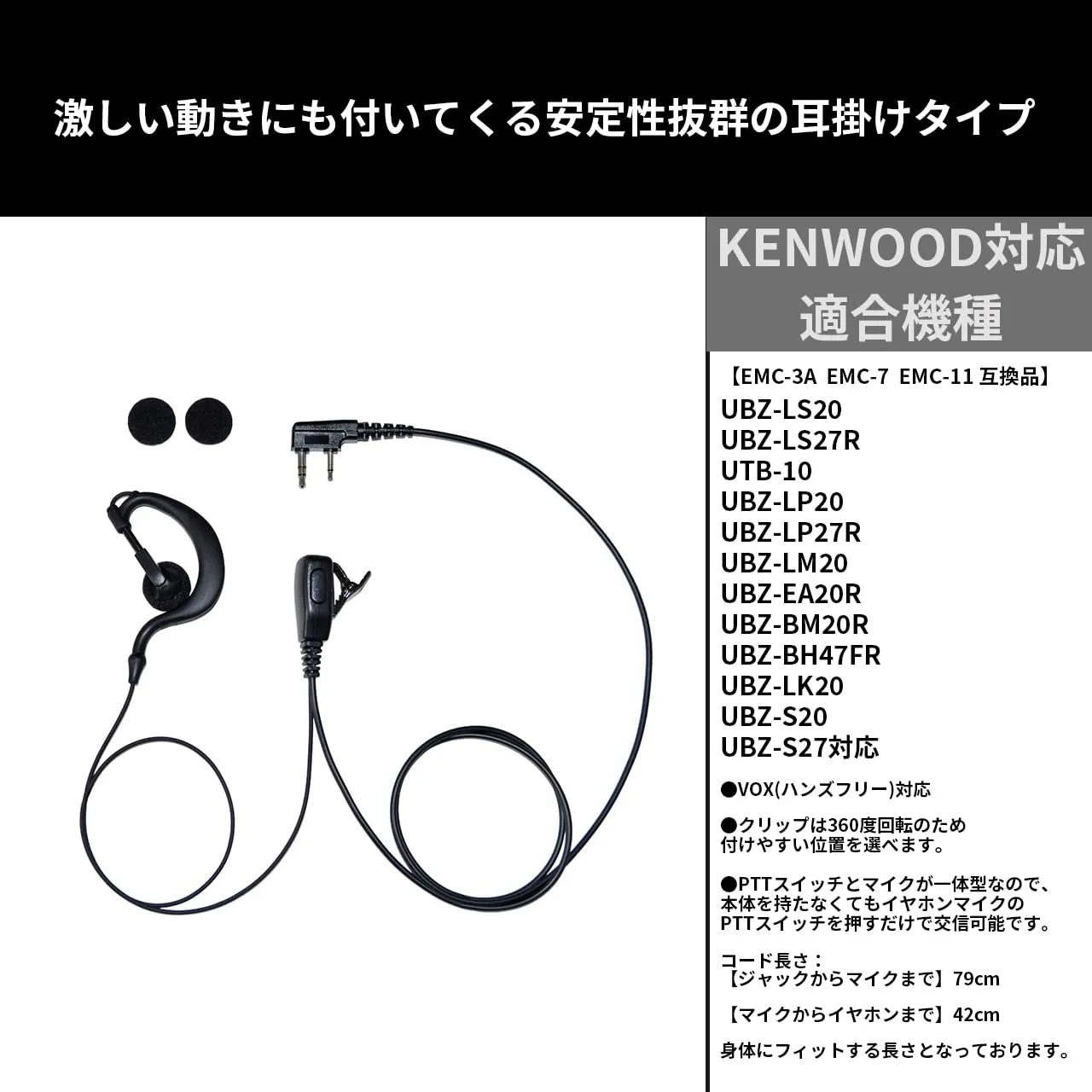 新品 BLUE CENTURY ブルーセンチュリー 国内メーカー 特定小電力 トランシーバー【KENWOOD(ケンウッド) DEMITOSS】対応 3.5φ・2.5φ L型2ピンプラグ イヤホンマイク 予備イヤーパッド付属 (耳掛けイヤホン型【K008】 1