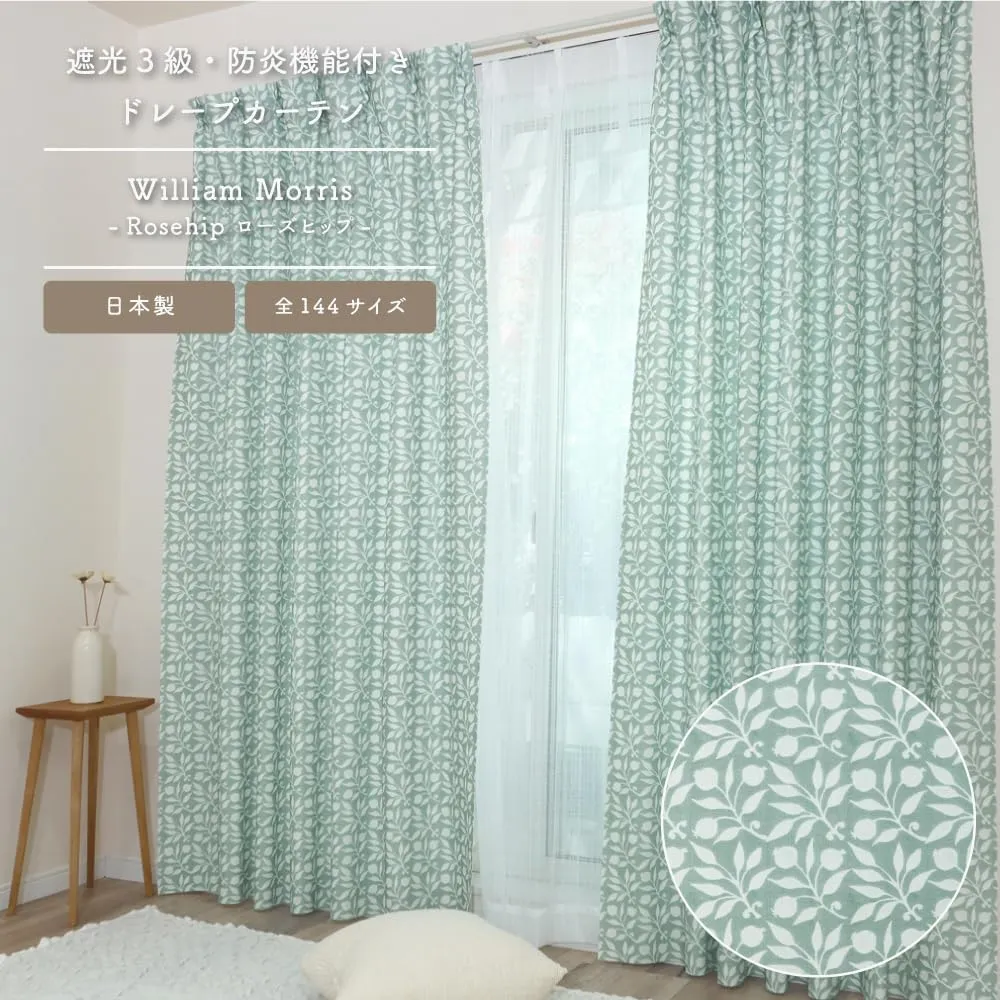 新品 【144サイズ】ウィリアム・モリス 国産防炎カーテン 2枚組【Rosehip ローズヒップ】P262 (約100cm幅×約215cm丈) 3級遮光 遮熱 断熱 目隠し 人気 多機能