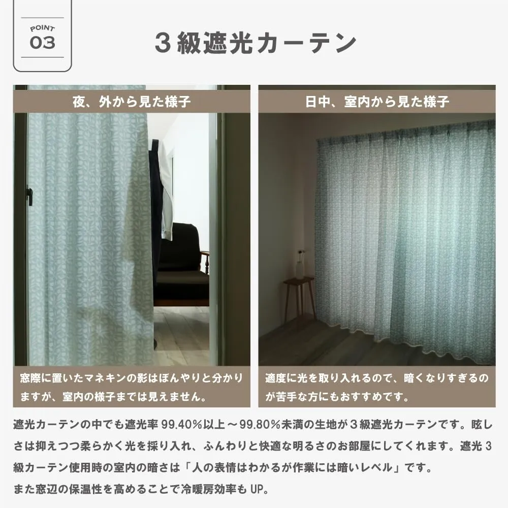 【機能】3級遮光、防炎、遮熱、断熱、ウォッシャブル