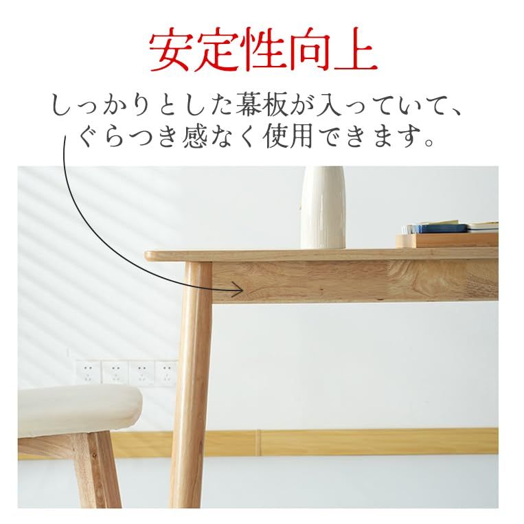 〇特徴:しっかりとした幕板が入っていて、構造的には強いつくりです。※「幕板」とは天板のすぐ下に四方ぐるっと入っている部材のこと。幕板を入れることで、天板と脚とをしっかり固定して強度を持たせたり、天板が反るのを防ぐ効果があります。