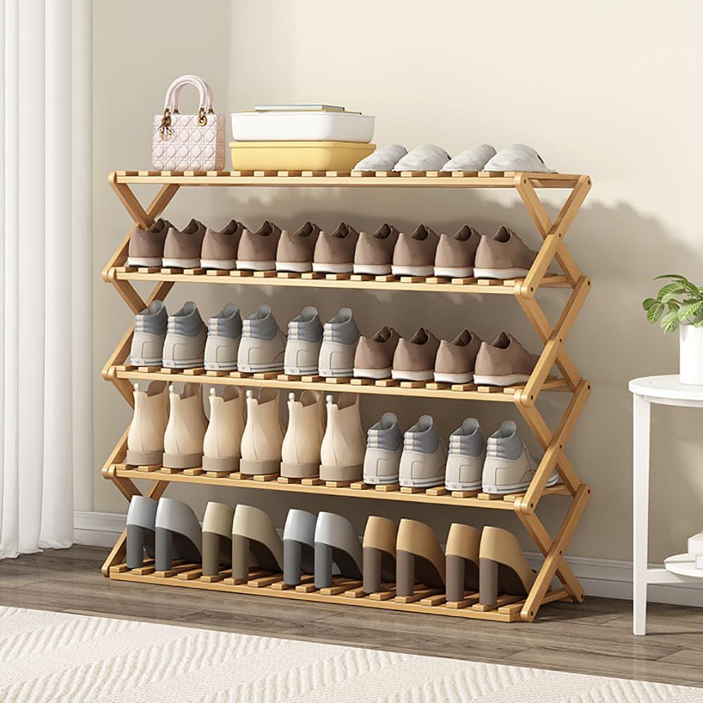 Fuyutu シューズラック 折りたたみ スリム 省スペース 4段/5段/6段 天然竹製 完成品 幅50/70/100cm 組立不要 靴棚 靴収納 玄関 室内 廊下 部屋 (ナチュラル, 5段-幅70cm)