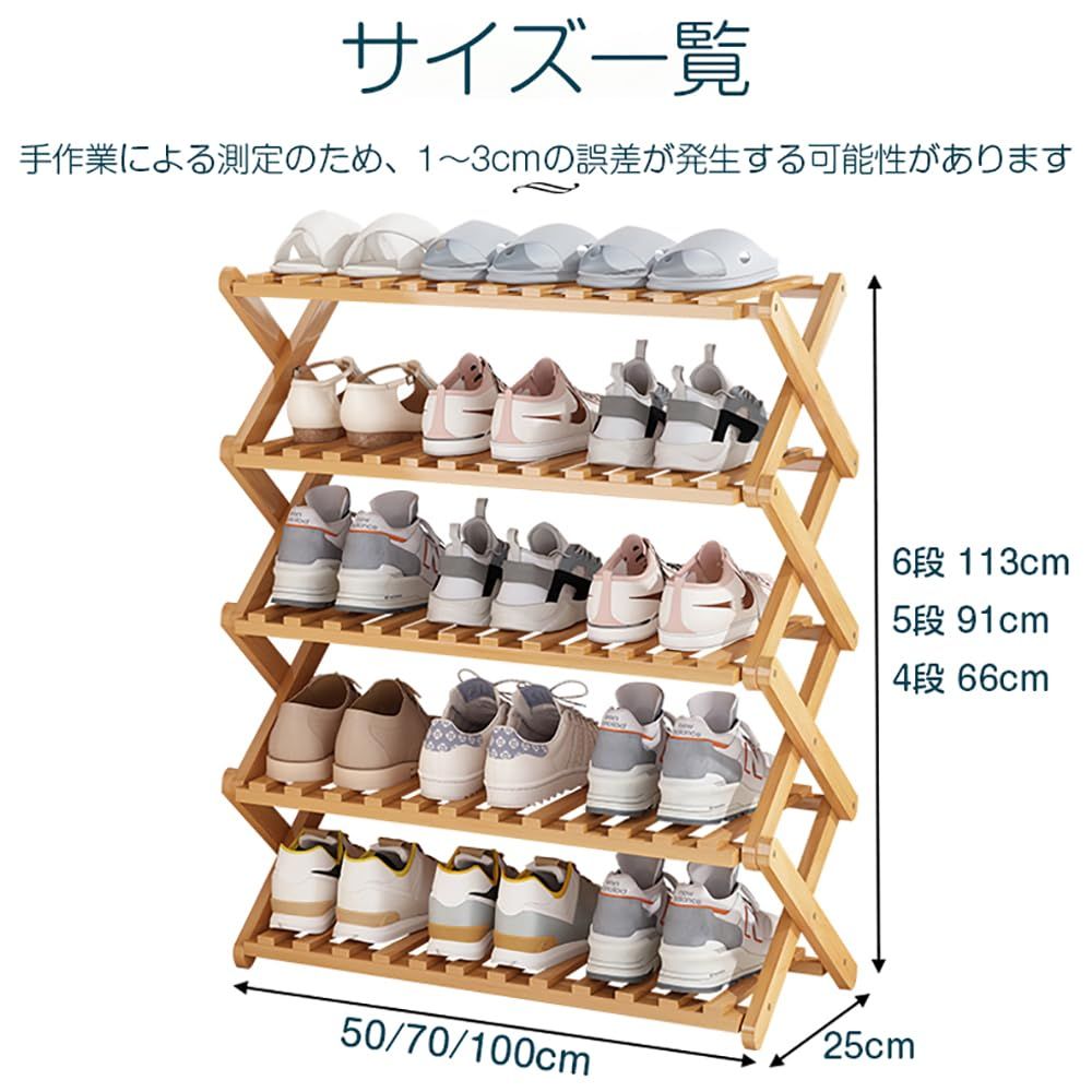 新品 Fuyutu シューズラック 折りたたみ スリム 省スペース 4段/5段/6段 天然竹製 完成品 幅50/70/100cm 組立不要 靴棚 靴収納 玄関 室内 廊下 部屋 (ナチュラル 5段-幅70cm)