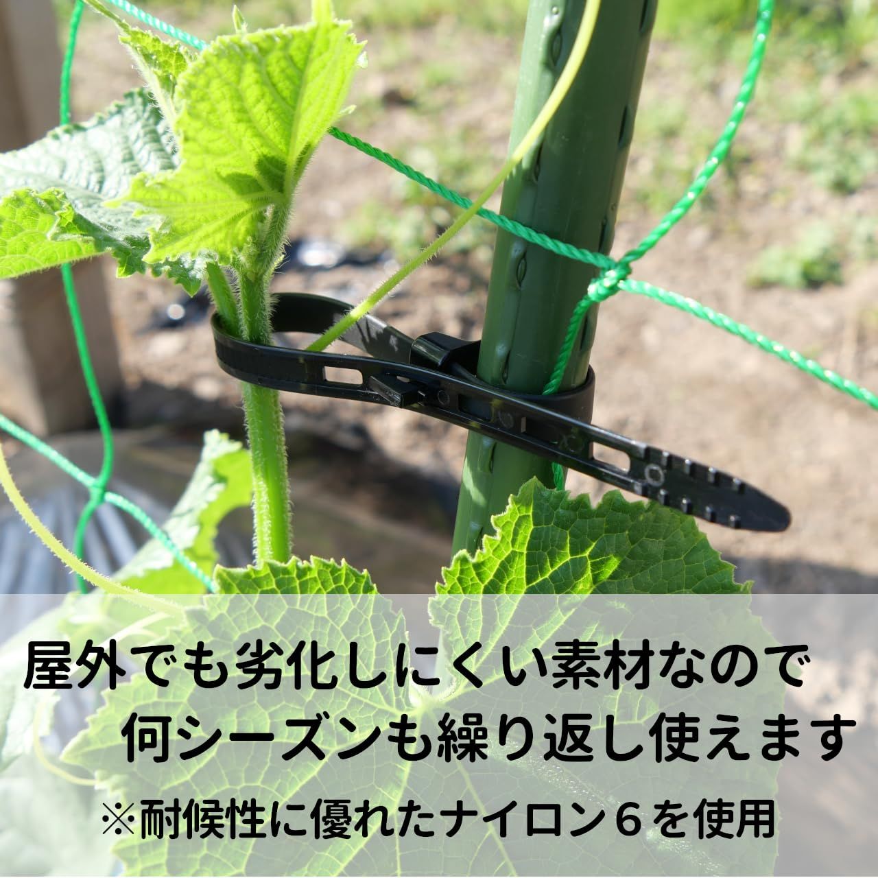 野菜や植物の誘引を行うためのストラップです。 商品サイズ:約11.5mm×約230mm 製品素材:耐候性ナイロン6 入数:50本入り