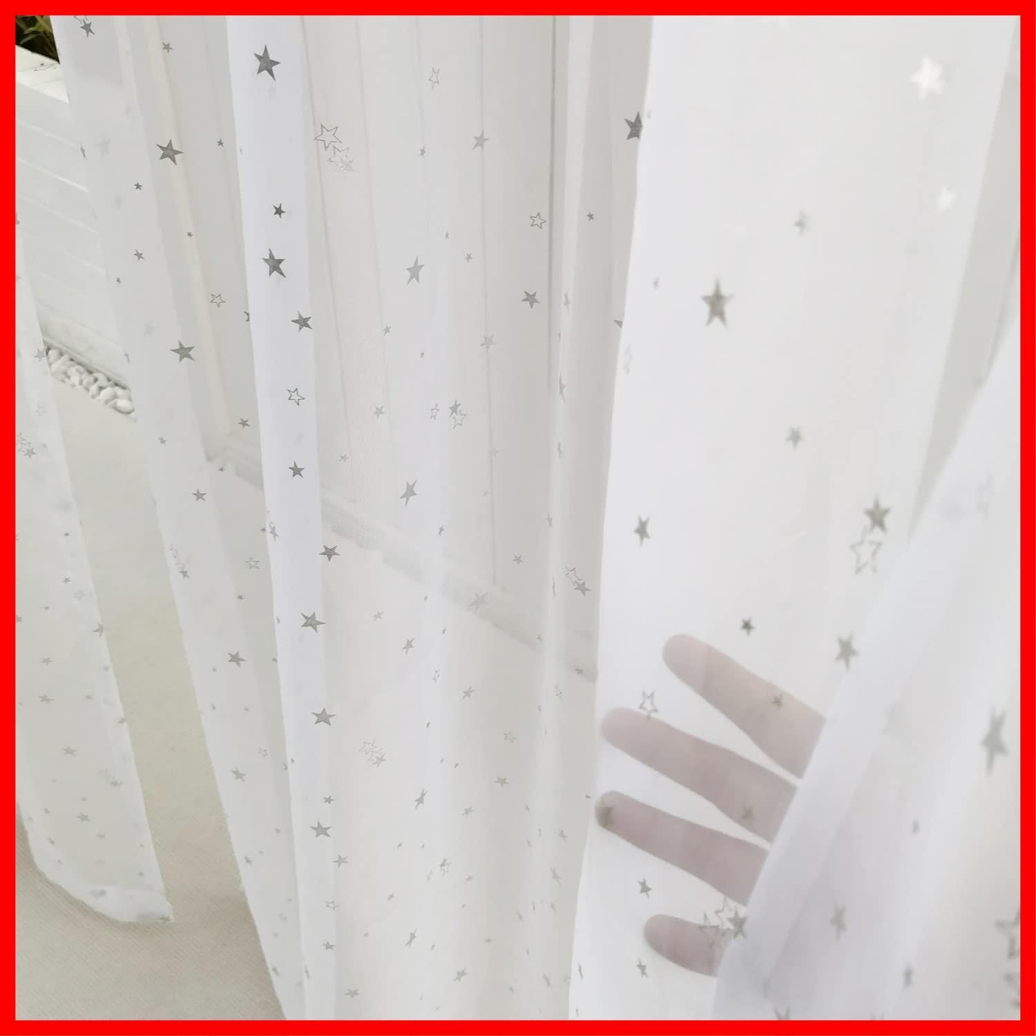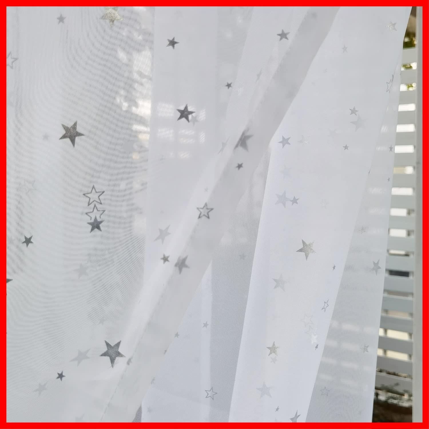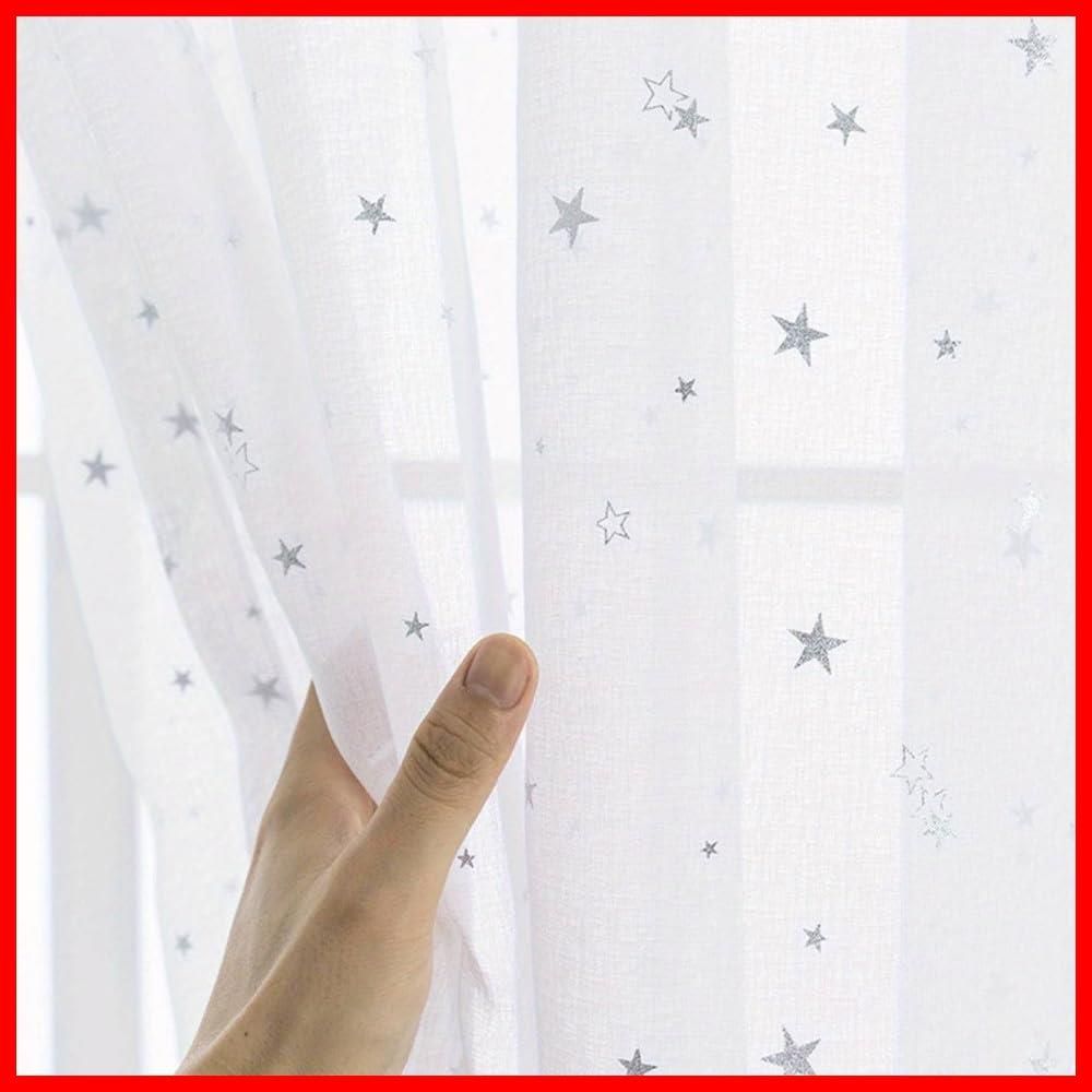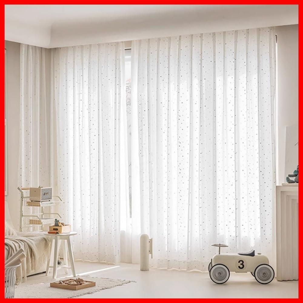WPKIRA レースカーテン UVカット 薄手 おしゃれ 自然に 換気 半遮光 窓 部屋 寝室 銀色の星 ドア 子ども用 洗濯可能 1組2枚入(幅100cm×丈178cm/1片)
