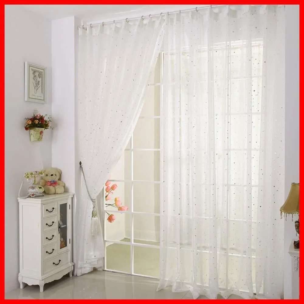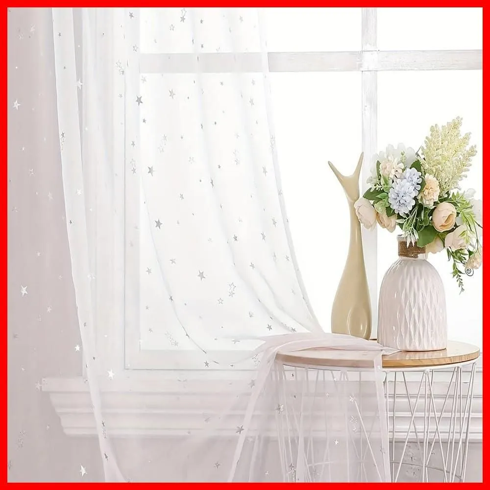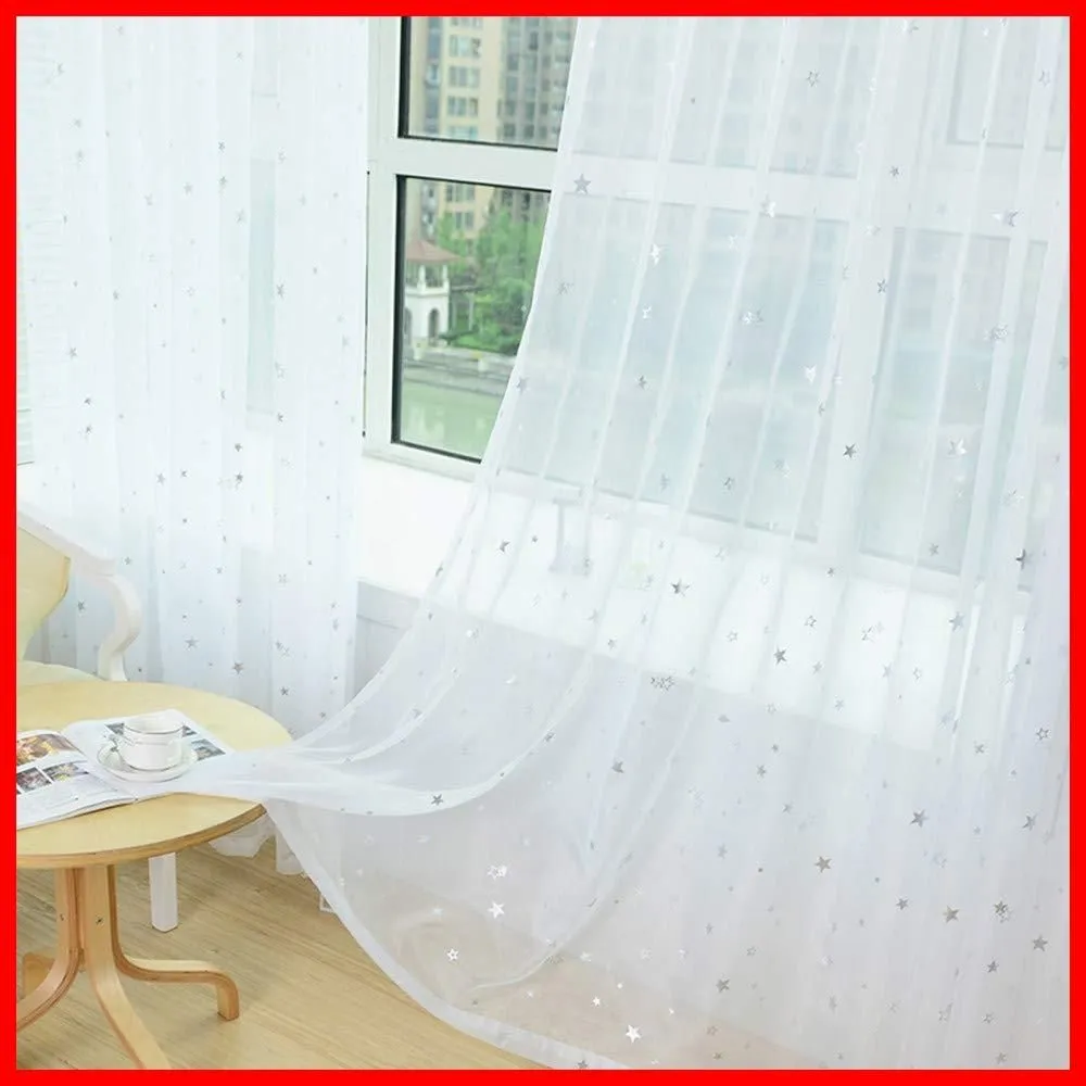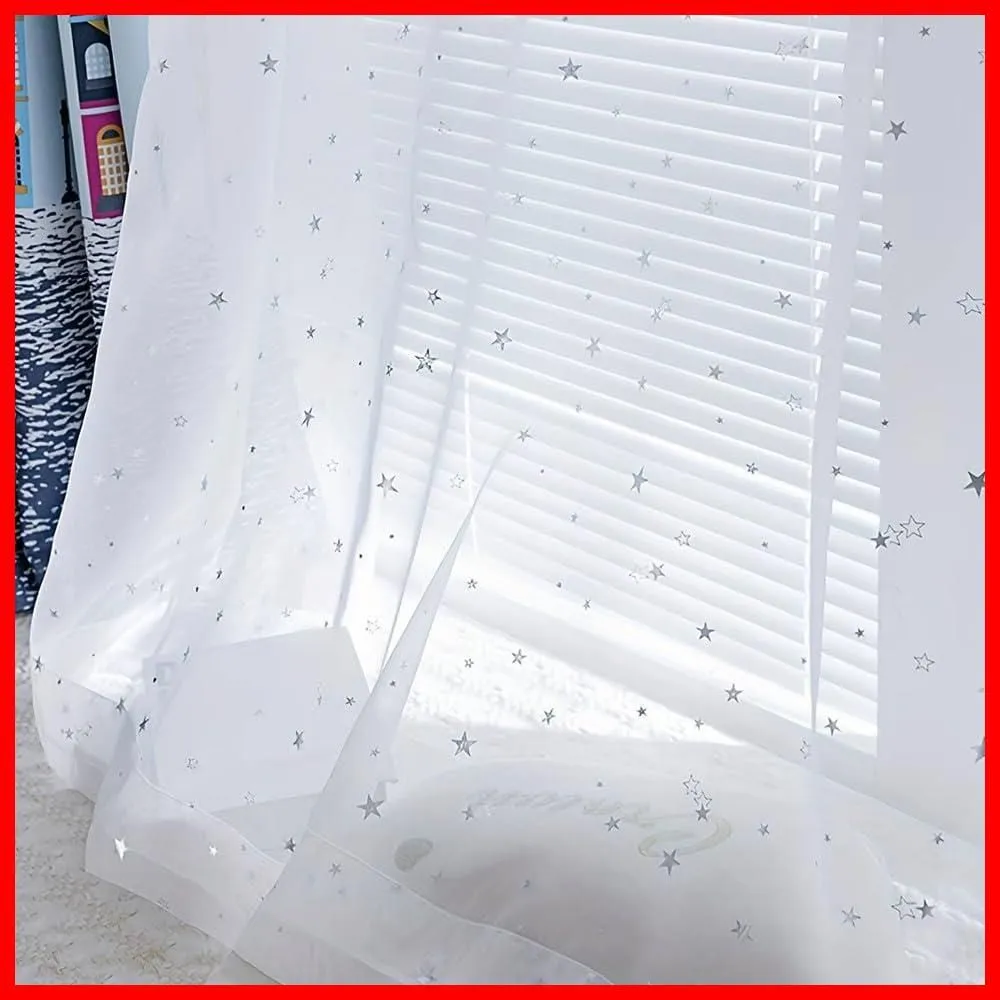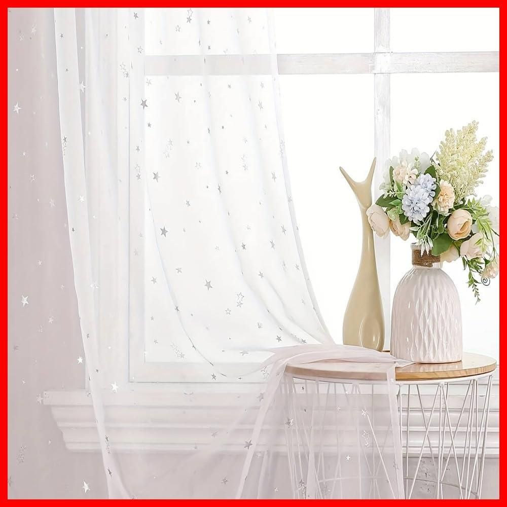 WPKIRA レースカーテン UVカット 薄手 おしゃれ 自然に 換気 半遮光 窓 部屋 寝室 銀色の星 ドア 子ども用 洗濯可能 1組2枚入(幅100cm×丈178cm/1片)