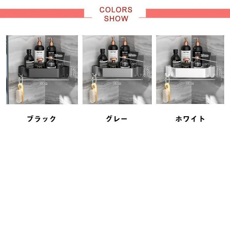 ■沖縄・離島は配送料が異なります。ご購入前にコメントをお願いいたします。 商品詳細 サイズ Fサイズ 33 × 25 × 5.2 cm 素材 ステンレス カラー ブラック / グレー / ホワイト --- 商品の特徴 - 多機能コーナーラック キッチンでは調味料を、洗面所・浴室では洗顔料、シャンプー、化粧品などの収納に最適です。 隅のスペースを有効活用でき、人の動線を邪魔しません。 - 優れた素材と仕上げ ステンレス製で美しい金属光沢があり、防錆処理を施しているため、浴室や水回りなどの湿気の多い場所でも錆びにくい設計です。 - 清潔に保てる構造 底面は水切れが良く、衛生面にも配慮しています。 - 簡単取り付け 付属の強力粘着テープ(2枚)で、穴あけ工事なしで簡単に設置可能です。 - 幅広い設置場所 お風呂場、洗面所、トイレなど、さまざまな場所でご利用いただけます。