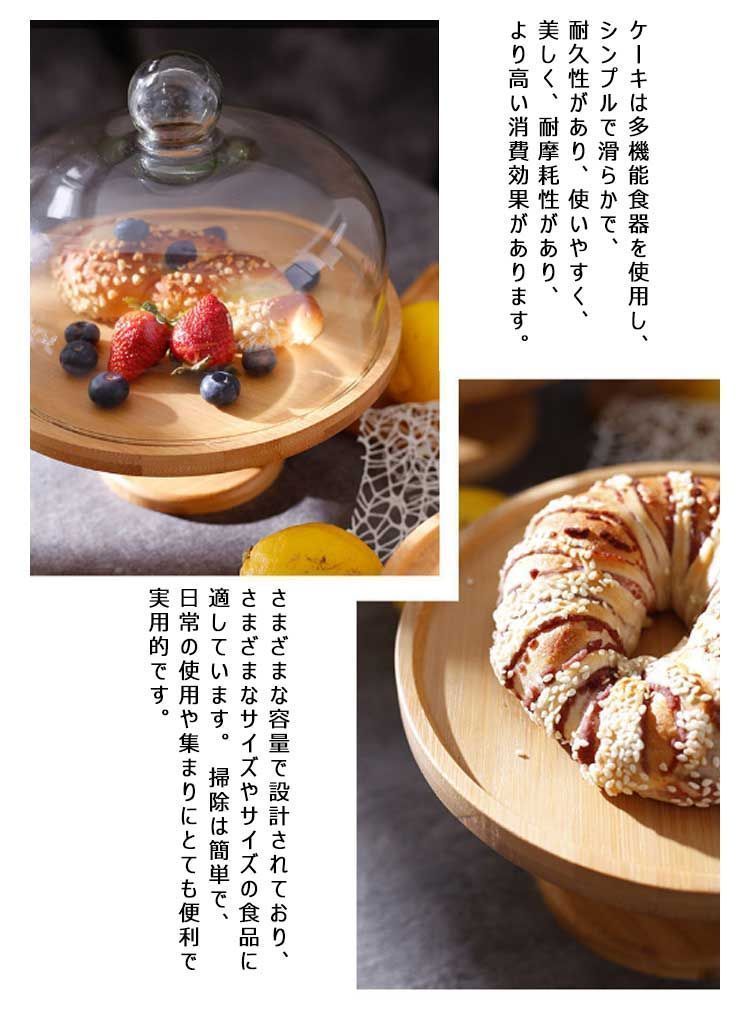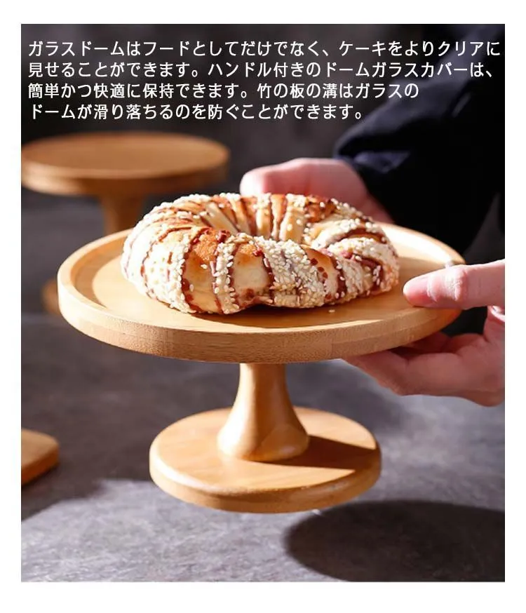 ケーキスタンド ウッド 木製 直径20cm 直径15cm 高11cm ガラス蓋付き アンティーク ケーキトレー ケーキトレイ 竹製 台付き かわいい おしゃれ