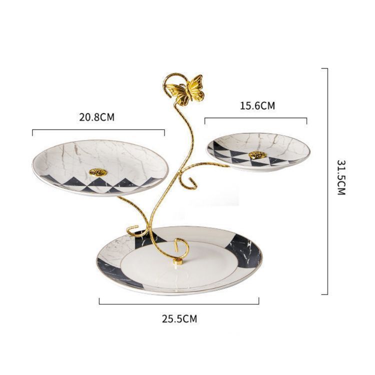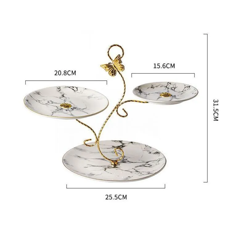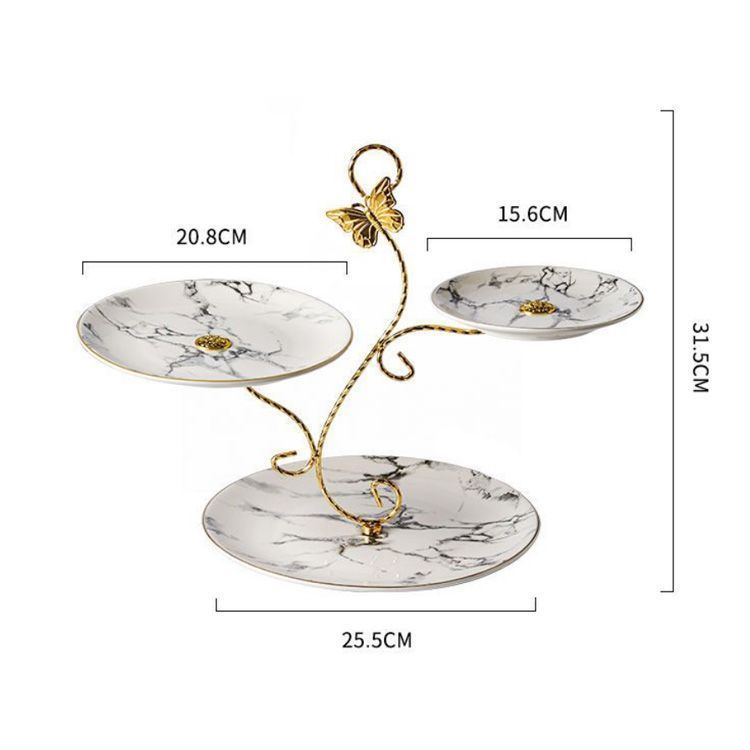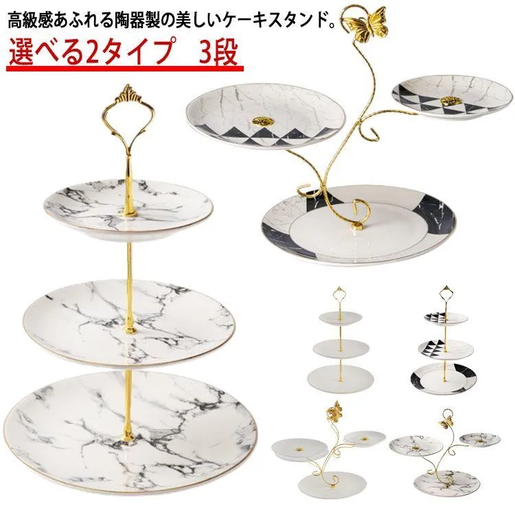 ケーキスタンド ケーキプレート デザートプレート アフタヌーンティースタンド 陶器 セラミック 3段 選べる2タイプ 北欧 大理石柄 白 幾何学模様 フルーツ 製菓 デザート スタンド