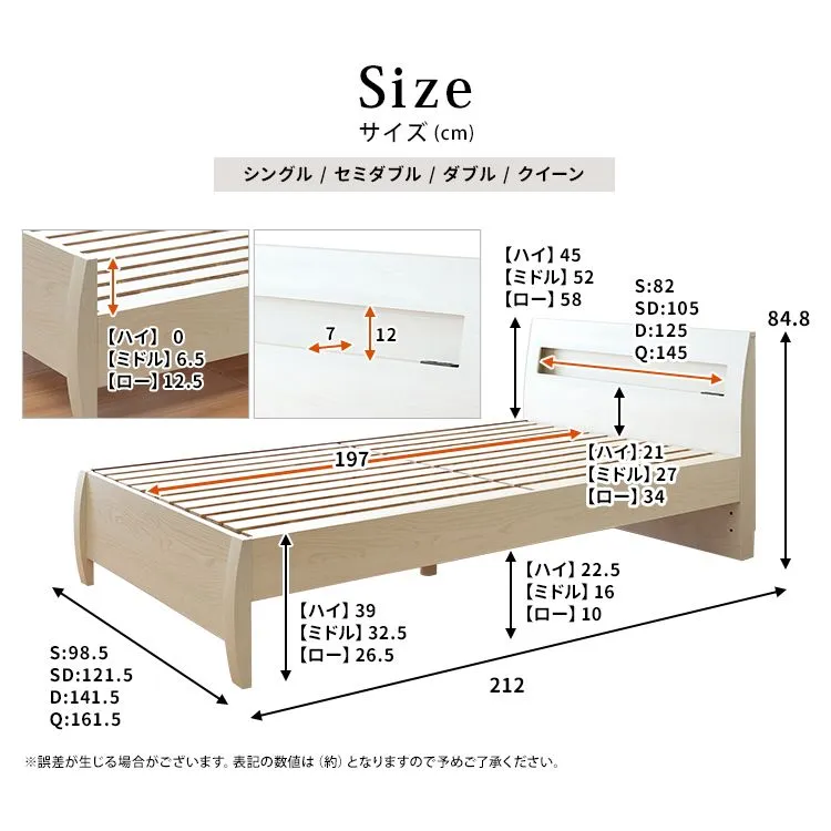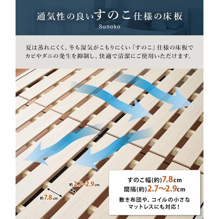 【床板からフットボードのはみ出る部分】高:0/中:6.5/低:12.5 ・すのこ厚み:約0.8 ※誤差が生じる場合がございます。