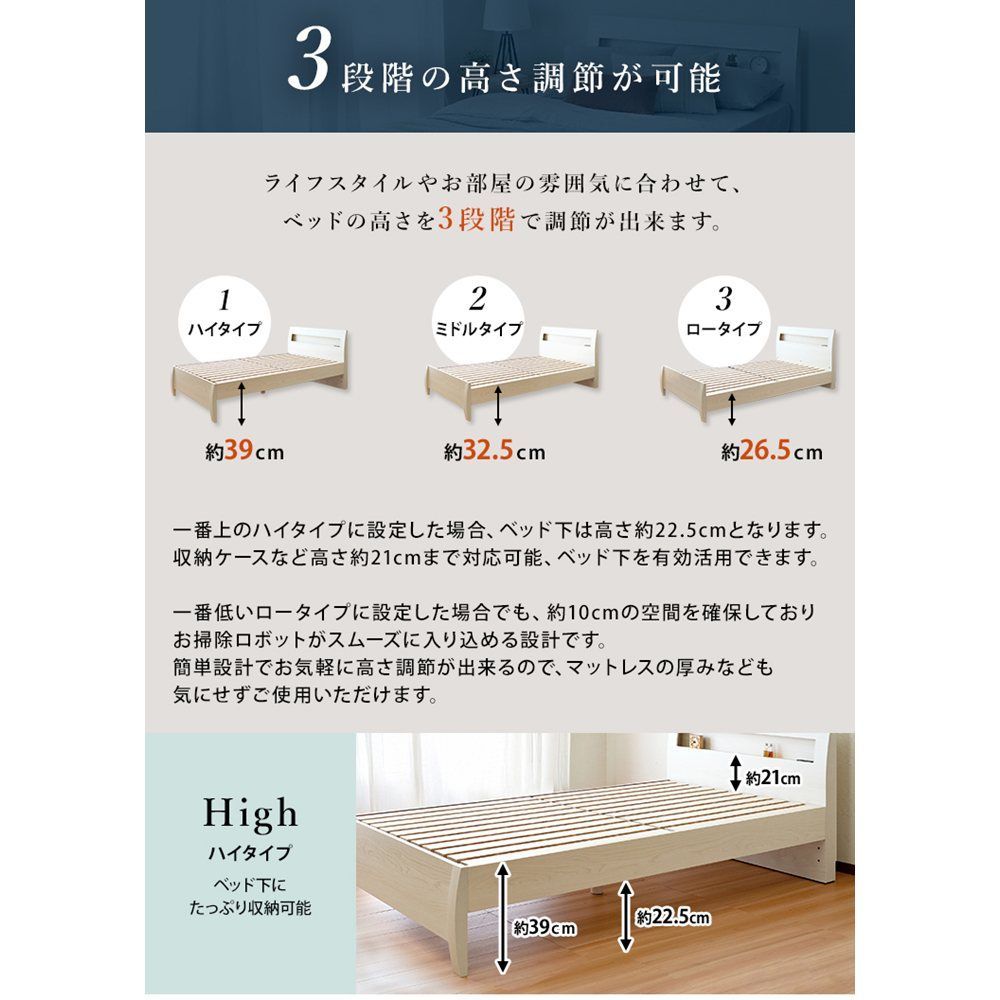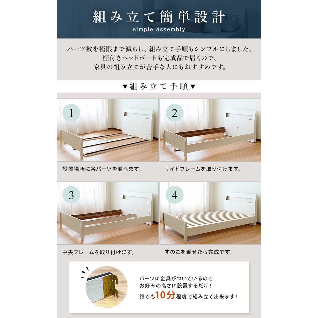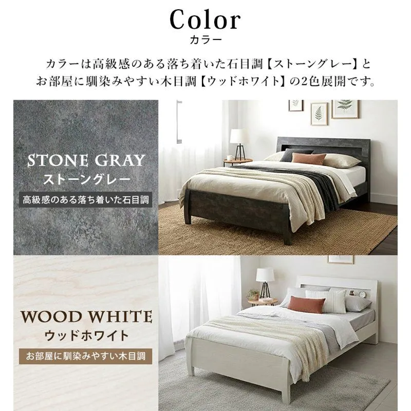FENNEL【フェンネル】ベッドフレーム ダブルサイズ jx44735 ベッド 棚付きベッド ホテルライク 組立簡単 3段階高さ調節 宮棚 2口コンセント付き すのこ ストーングレー ウッドホワイト 送料無料 【全2色】[8100]