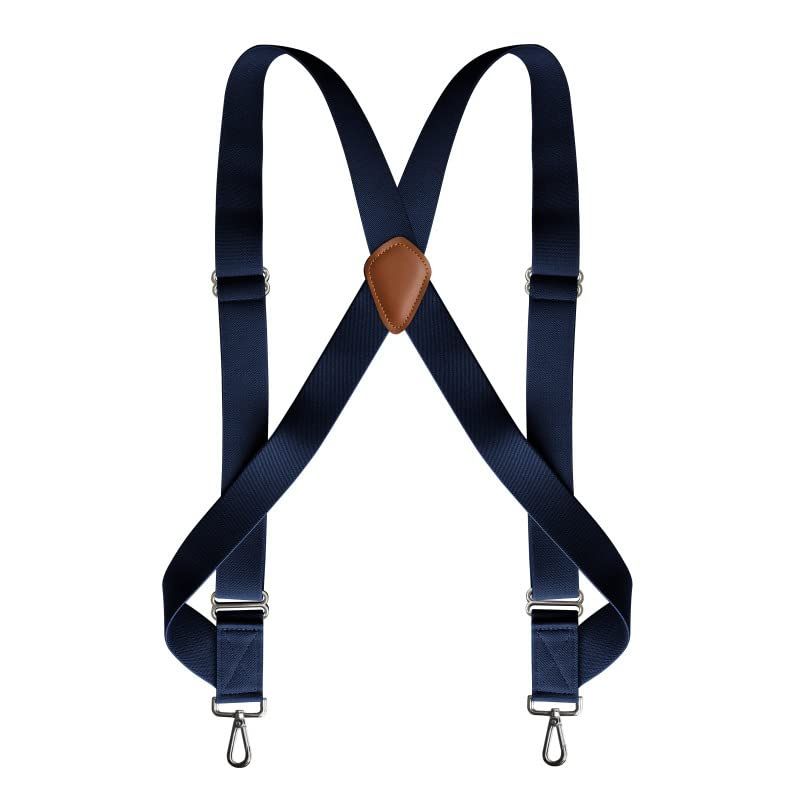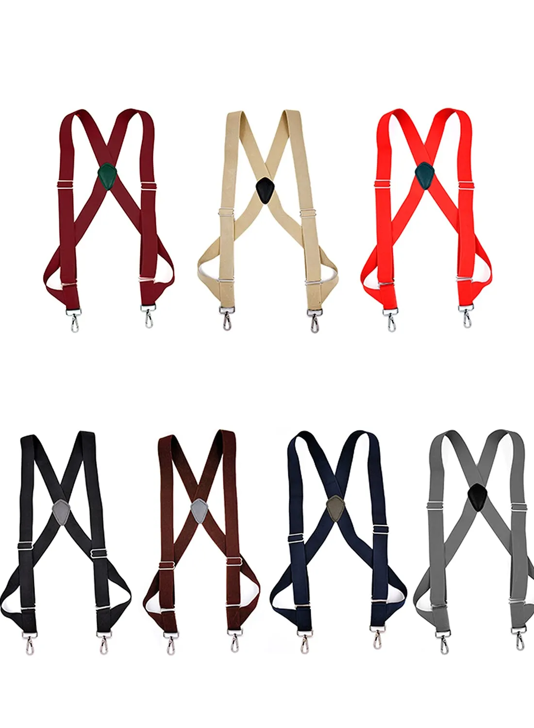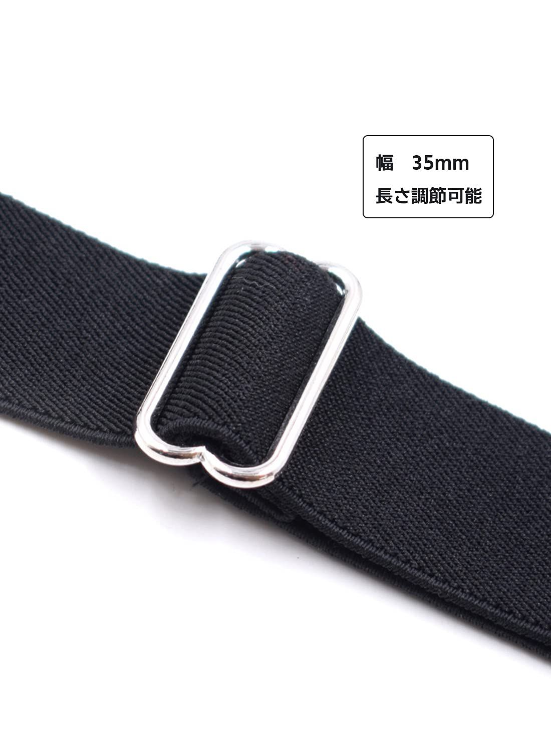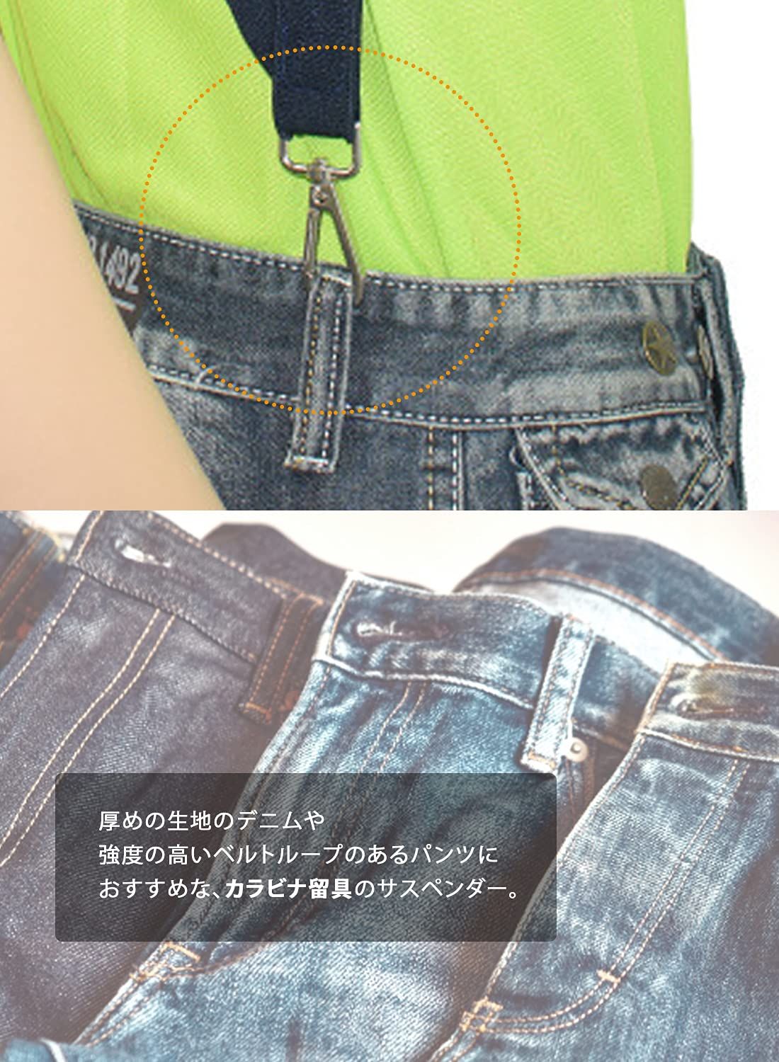 【カラー】ブラック / グレー / ネイビー / ブラウン / ワインレッド / レッド / ベージュ ※中国製。記載のサイズは実寸と誤差があることもあります。ご了承ください。 背中でX字に交差してホールドし、サイド2点でズボンを留めるホルスター型サスペンダー。 ズボンのベルトループにひっかけて使用するカラビナ留具タイプです。※ベルトループのないズボンにはご使用いただけません。 クリップでは留めにくい、厚手のデニムやズボンにおすすめです。 ※中国製。記載のサイズは実寸と誤差があることもあります。ご了承ください。