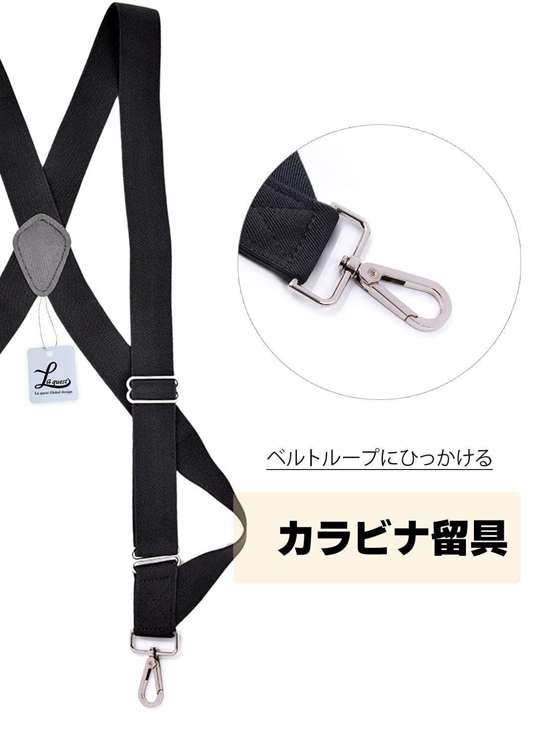 [Laquest] ホルスター型 サスペンダー カラビナ留具 フックタイプ 35mm メンズ/レディース