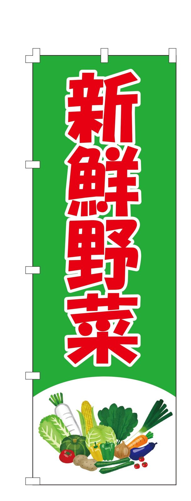 【NO.296】 デザイン 新鮮野菜 のぼり 旗 幕 サイズ:約W60×H180cm 生地:ポンジ※非防炎 加工:周囲ヒートカット チチ:上3左5