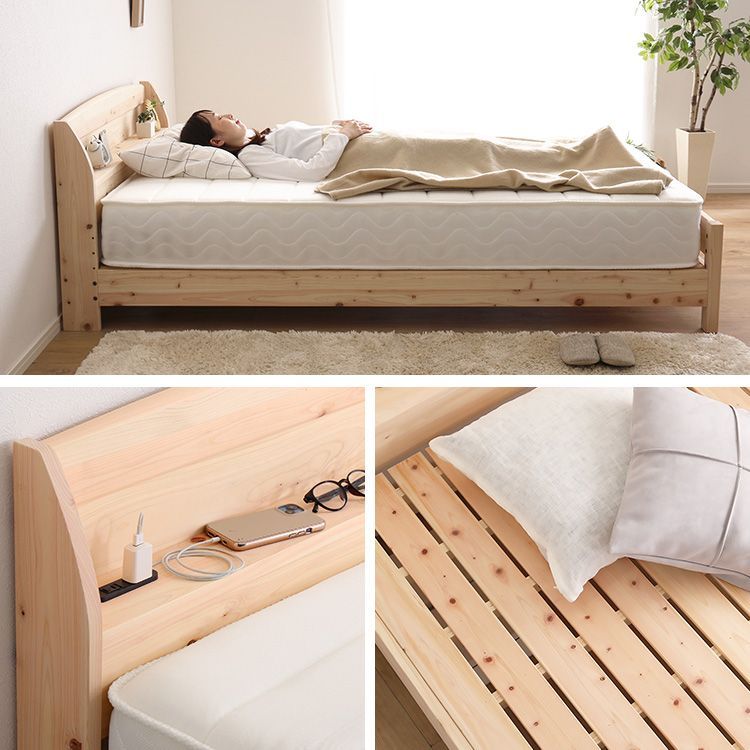 棚コンセント付き国産ひのきベッド ノーマルすのこタイプ【HINOKA-ヒノカ-】(シングル) SH-30-JPGG-S-NA ナチュラル