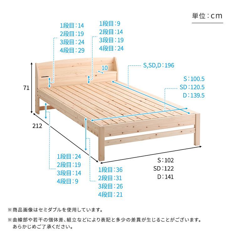 【商品説明】 棚コンセント付き国産ひのきベッド ノーマルすのこタイプ シングルサイズ! 国産ひのきをふんだんに使用することで、リラックス効果はもちろん、抗菌・防虫効果を得られます。 コンセント付きの棚はスマートフォンなどを充電しながら置ける優れもの! 4段階の高さ調節機能により、理想の高さにできます。 厳しい規格のJIS試験にも合格した、安心強度の頑丈フレーム! S・SD・Dの3サイズ展開!