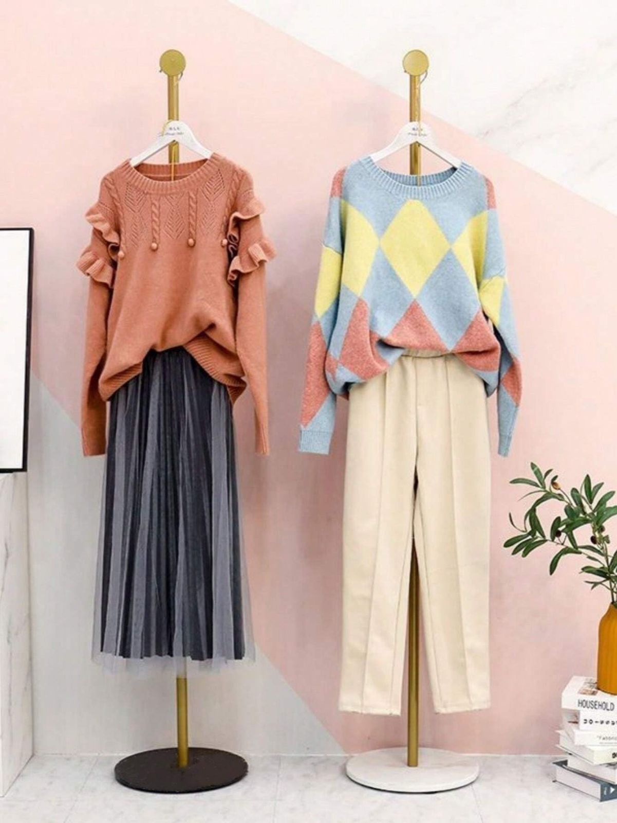 【ユニークなデザイン】金属ブラケット付きの自立型衣類ディスプレイラック、揺れずに安全で安定しています。