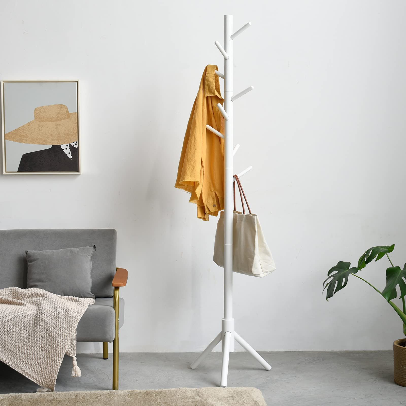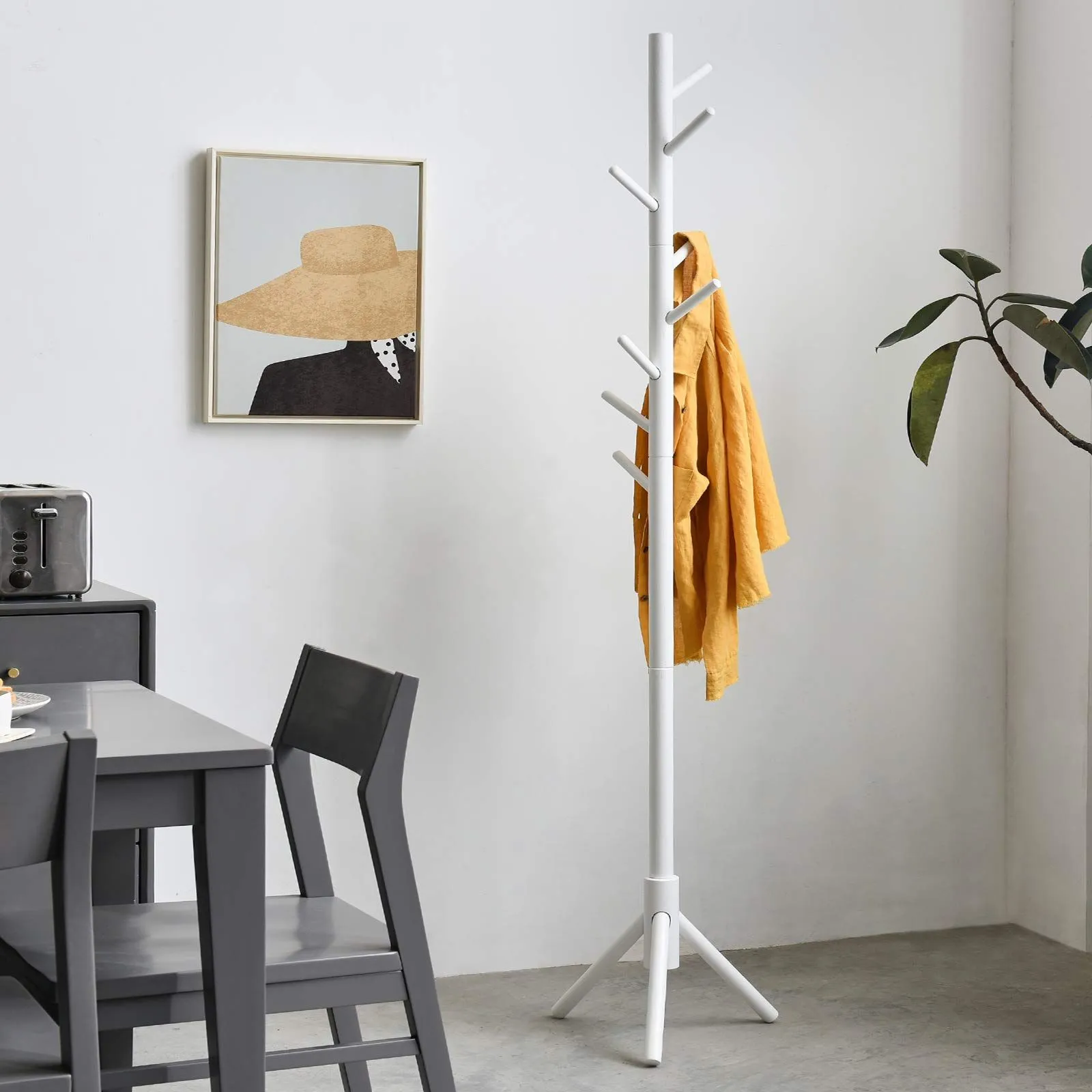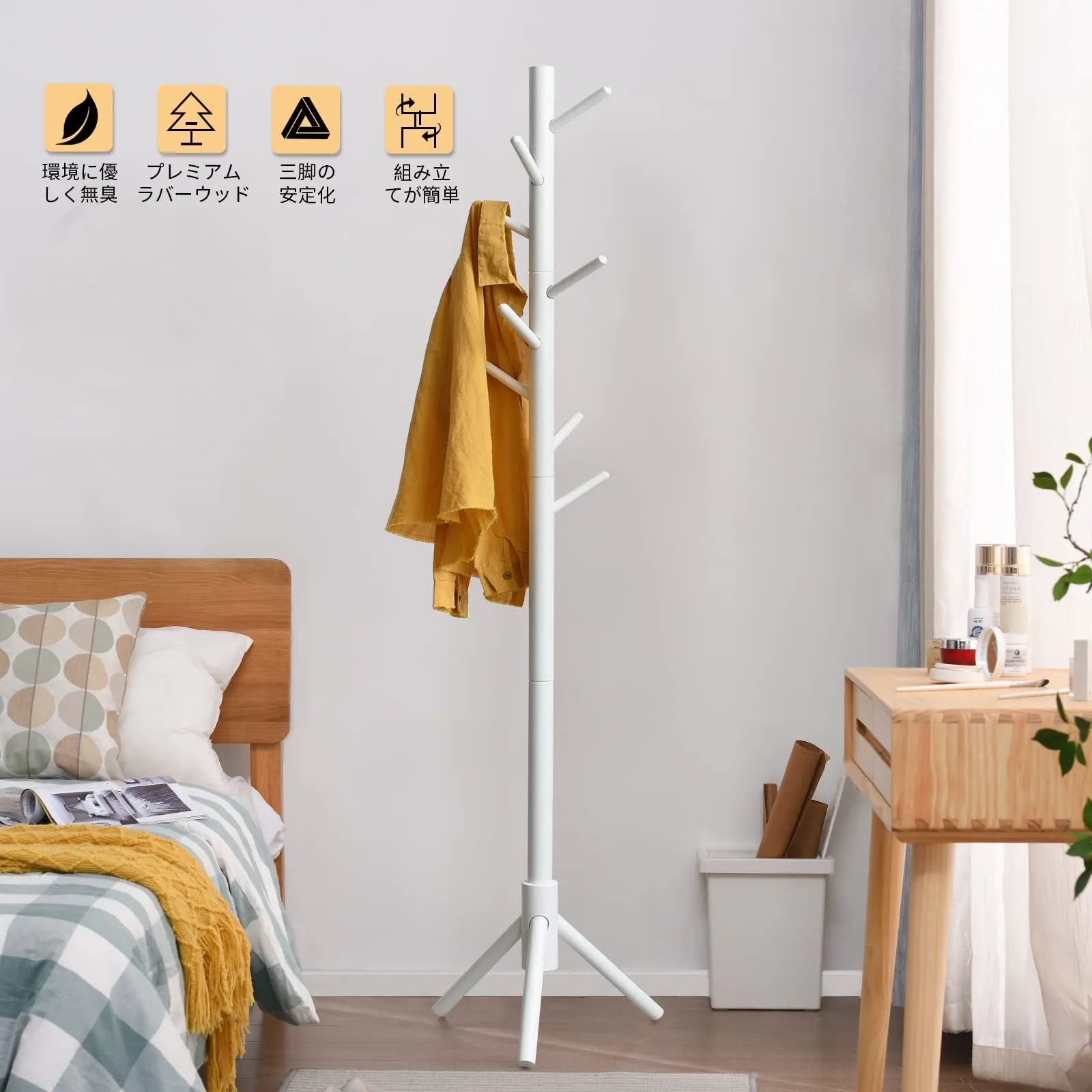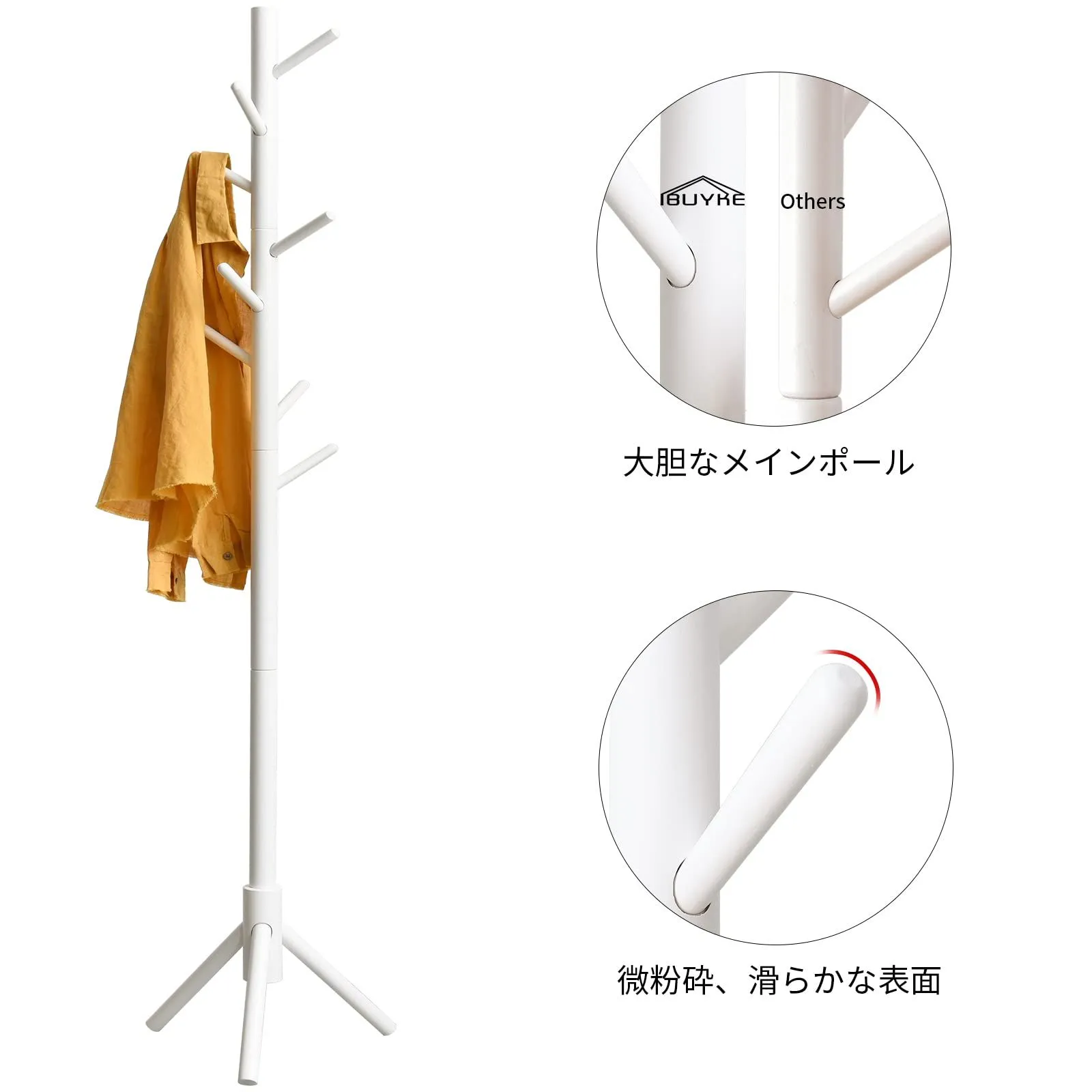 新商品 カバン掛け 衣類収納 木製 コンパクト 落ちにくい ハンガーラック 倒れにくい 変更可能 おしゃれ 枝型フック設計 コートハンガー 高さ181cm 組立て簡単 ポールハンガー ホワイト IBUYKE JPRF-1194