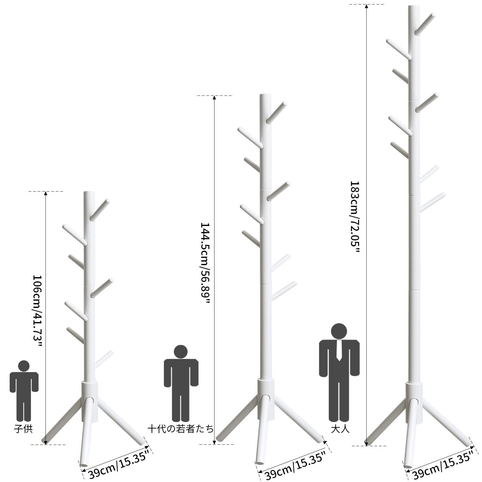 IBUYKE ポールハンガー コートハンガー おしゃれ ハンガーラック コンパクト カバン掛け 衣類収納 木製 落ちにくい 倒れにくい 変更可能 枝型フック設計 高さ181cm 組立て簡単 ホワイト JPRF-1194
