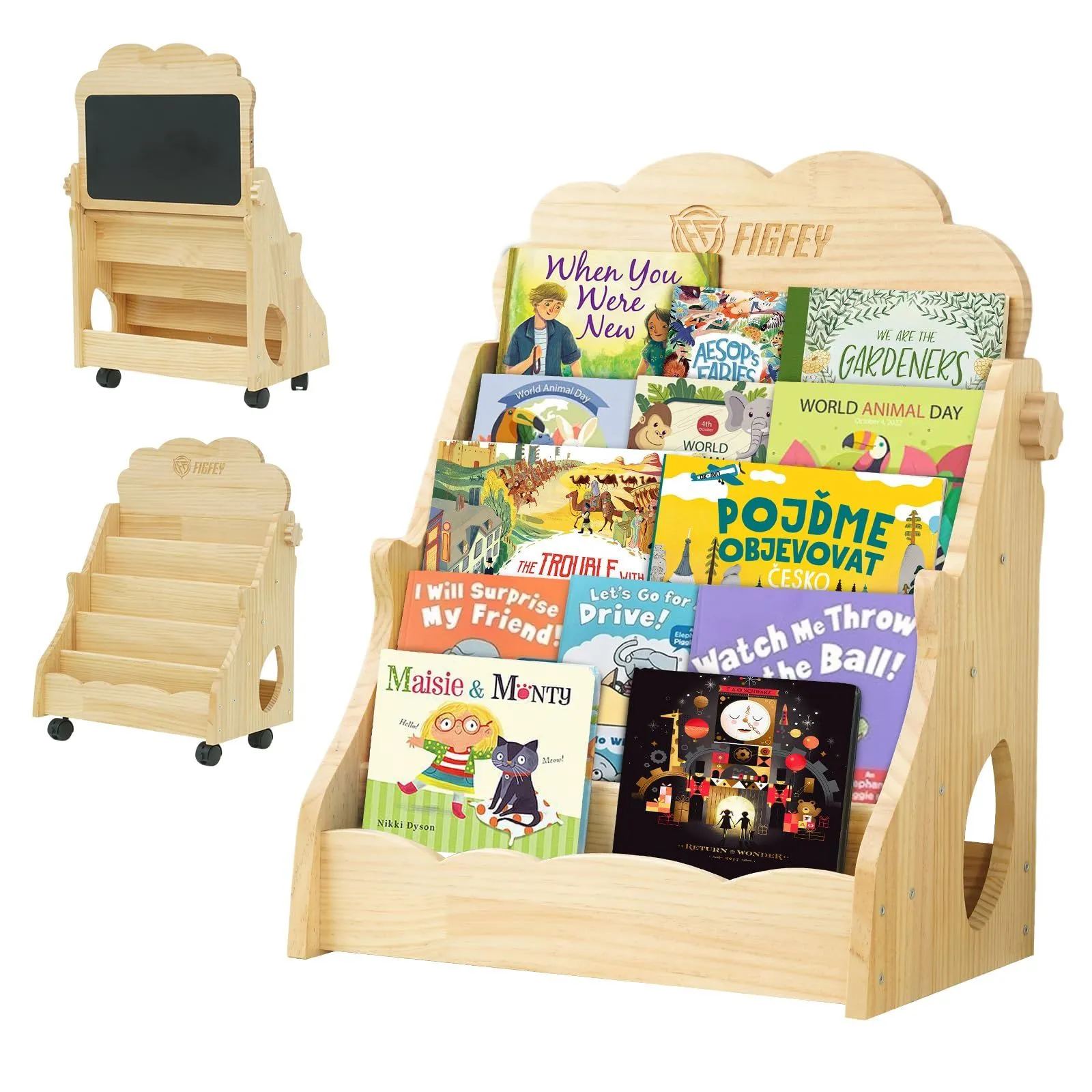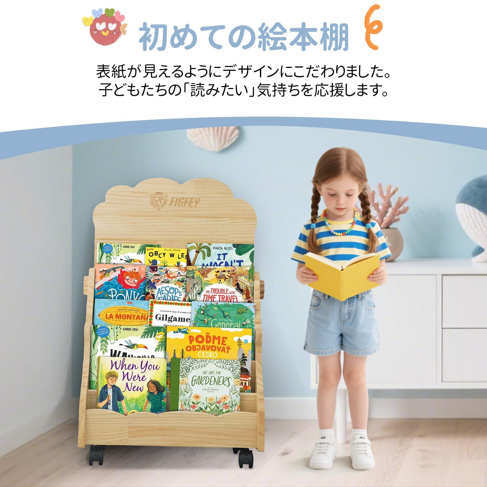 絵本棚 絵本ラック 本棚 絵本 子供 5段 ディスプレイ ディスプレイラック 書棚 オープン書棚 コミック 棚 移動棚 子供部屋 収納 オープン シェルフ 本 雑誌 ラック 木製 組立 プレゼント (絵描きボード付き)