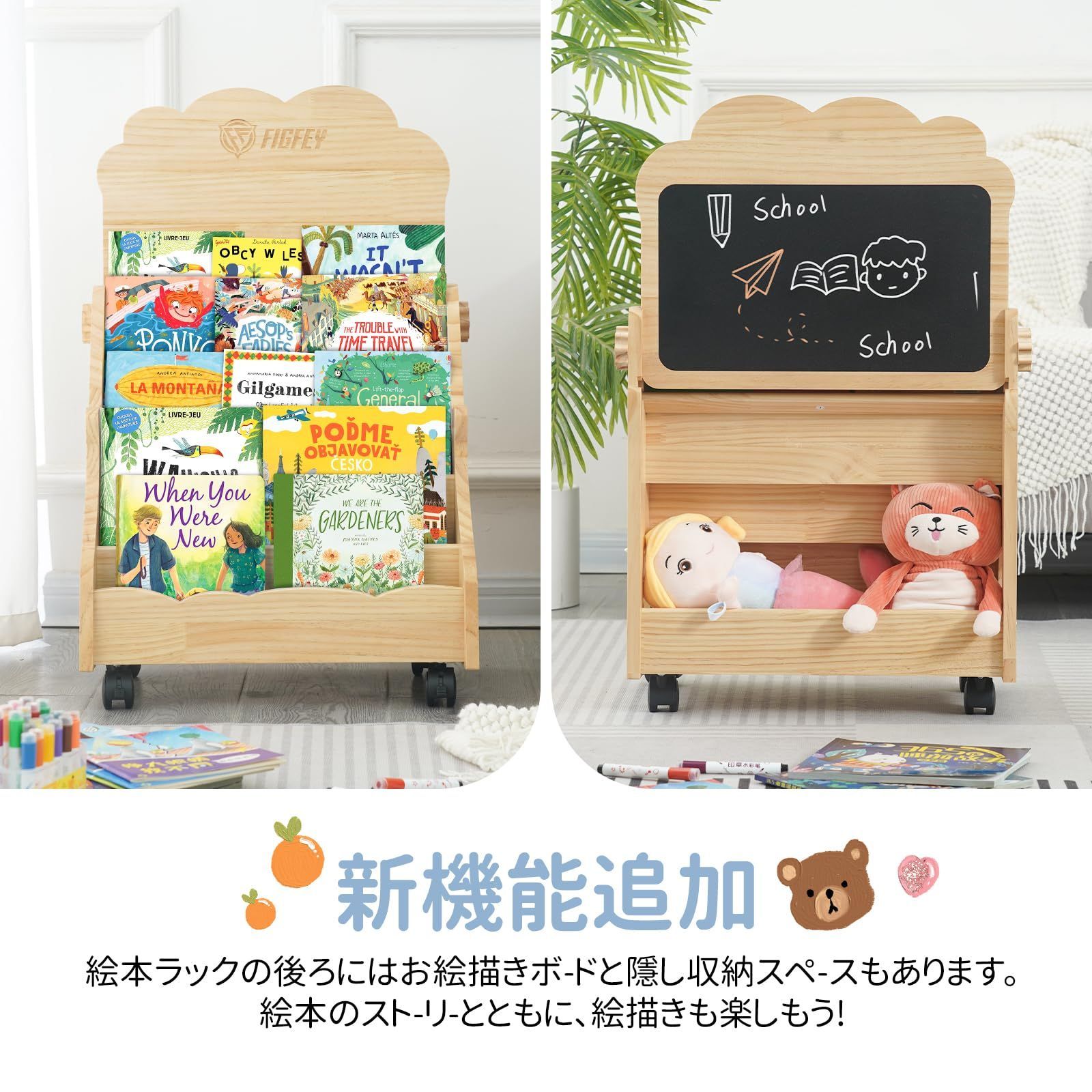 【お絵かきも楽しめる2WAY仕様】背面には可愛い黒板付きで、お子様が自由にお絵かきやお勉強を楽しめます。収納と遊びを両立した一台二役の便利な子供用本棚です。