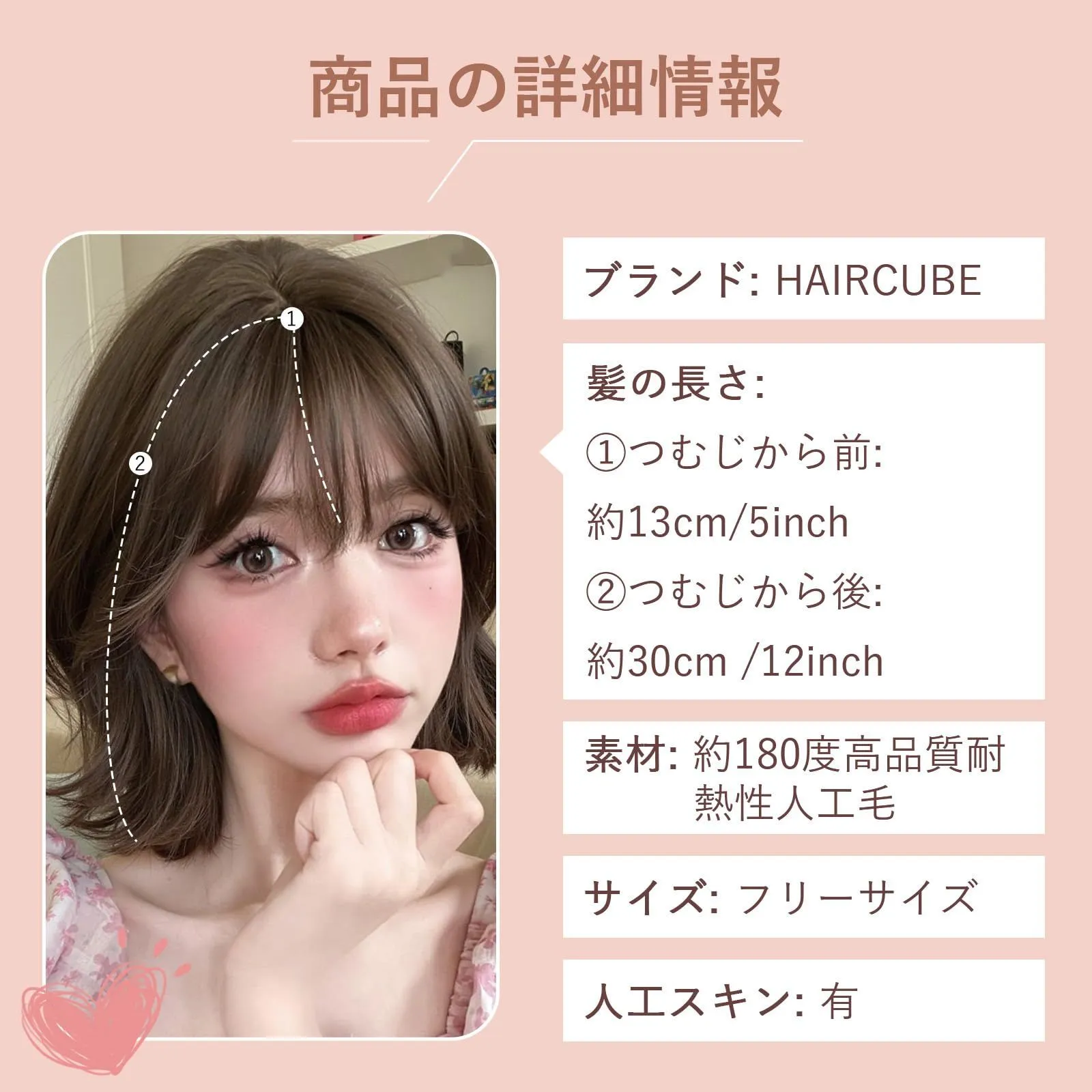 HAIRCUBE ウィッグ ボブ ショート 女性 カツラ フルウィッグ 自然 原宿風 コスプレ 女装 耐熱 原宿 イメチェン wig(冷たい茶色)