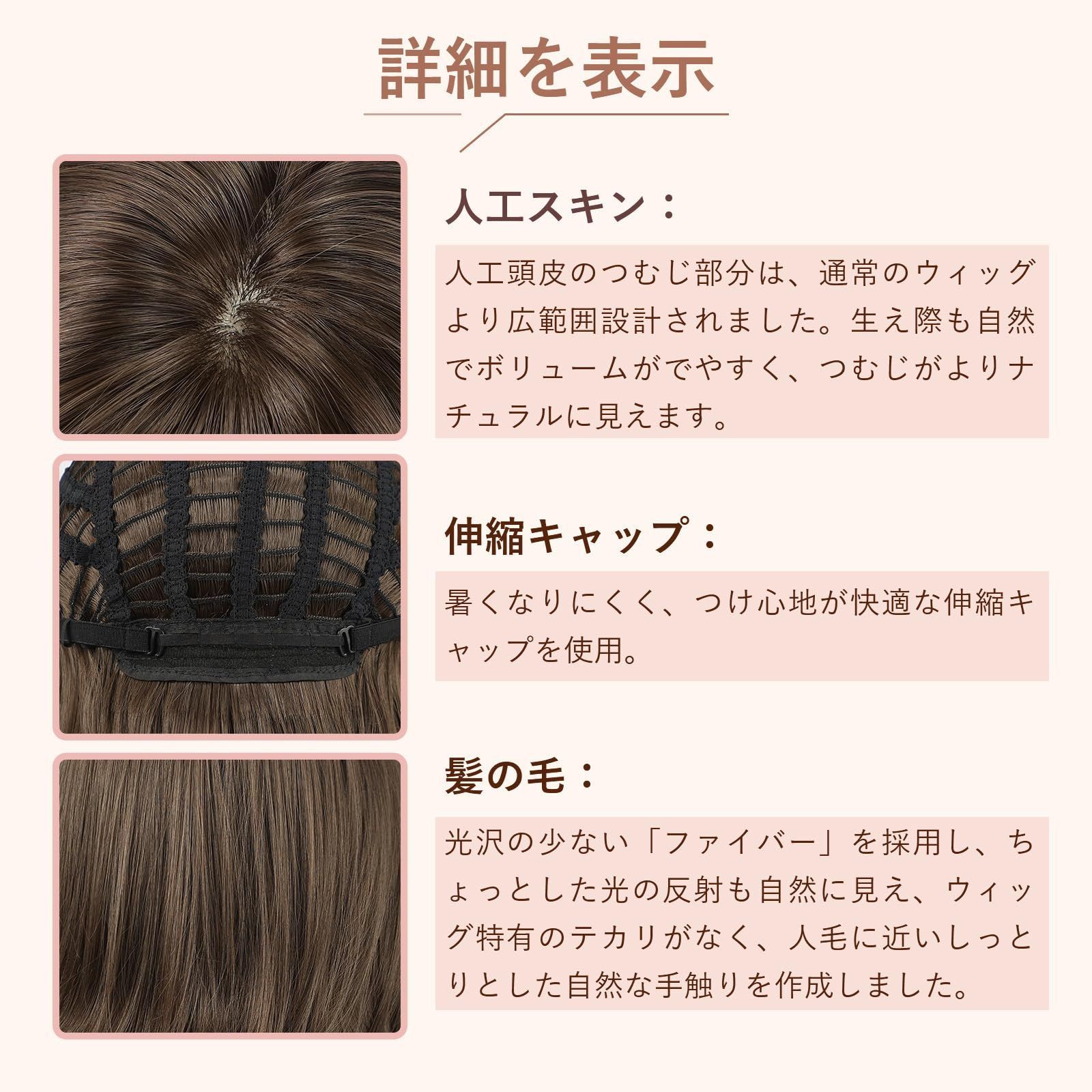素材:高品質耐熱ファイバーを使用、ちょっとした光の反射も自然に見え、ウィッグ特有のテカリがなく、人毛に近いしっとりとした自然な手触り。まるで自分の髪のような自然てす。