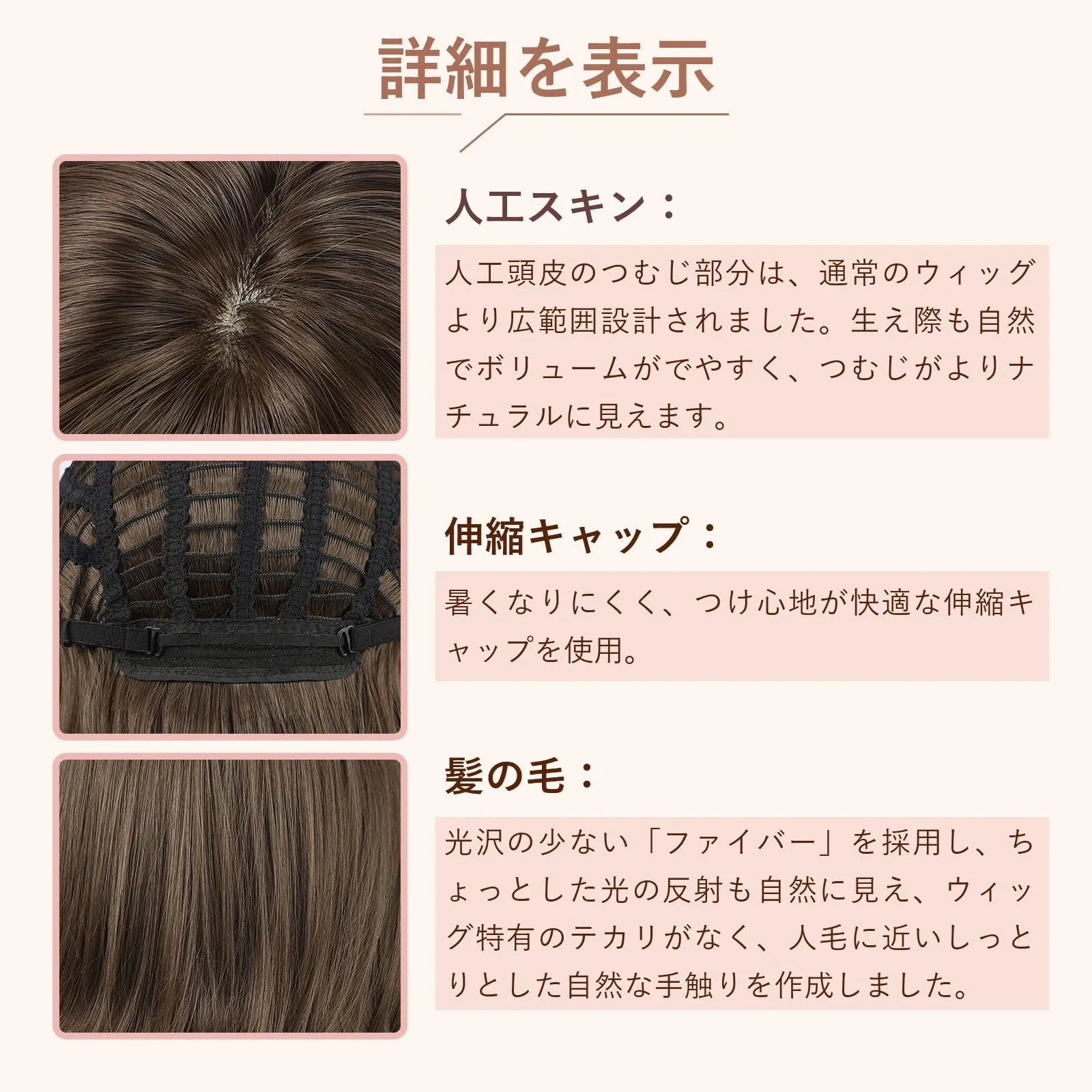 ご注意事項:この製品は人工毛であり、長時間の輸送によりスタイルに変化が生じる可能性があります。また、着用効果は顔の形によって異なる場合がありますので、ご理解の上でご購入をお願いします。
