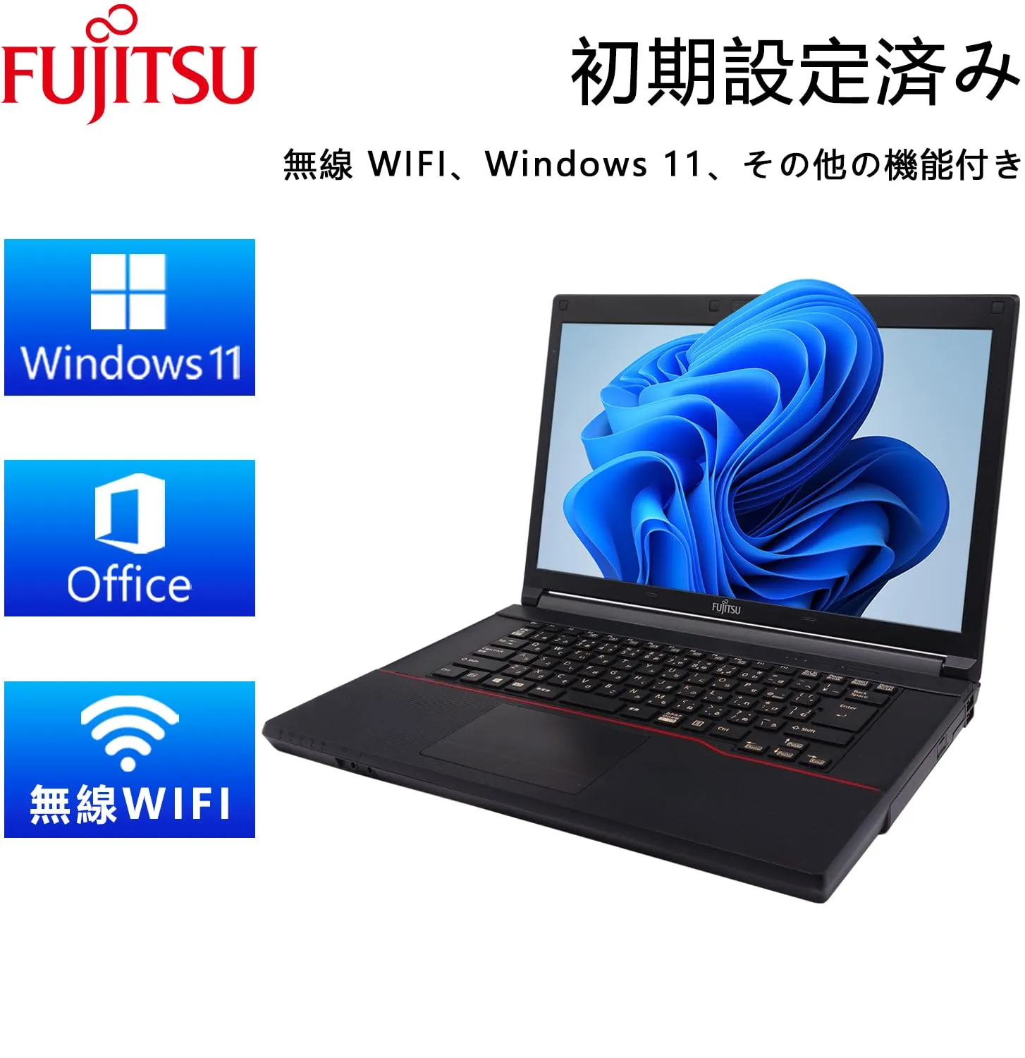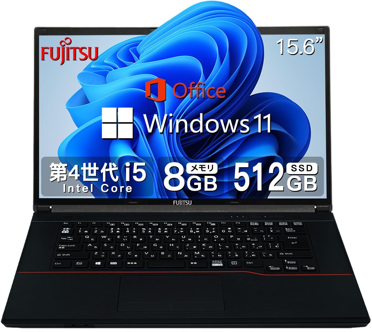 新品 【整備済み品】 【CPU:第4世代Core-i5】富士通 ノートパソコン FMVシリーズ・メモリ8GB+SSD 512GB・MS & Office 2019搭載・Windows11 Pro・USB3.0・15.6インチ・Wi-Fi・ビジネス・ノートパソコ